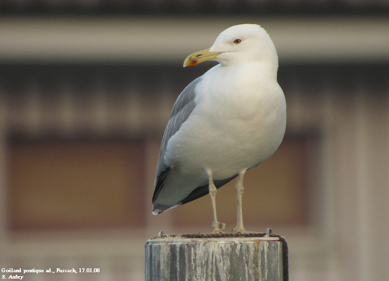 Larus cachinnans adult UKK L-00xxxx January 17 2008, Fussach, Swizerland. Picture: Stephen Aubry. Bird ringed UKK L-00xxxx, ring code not read, but from Ukraine. Pale iris. |
