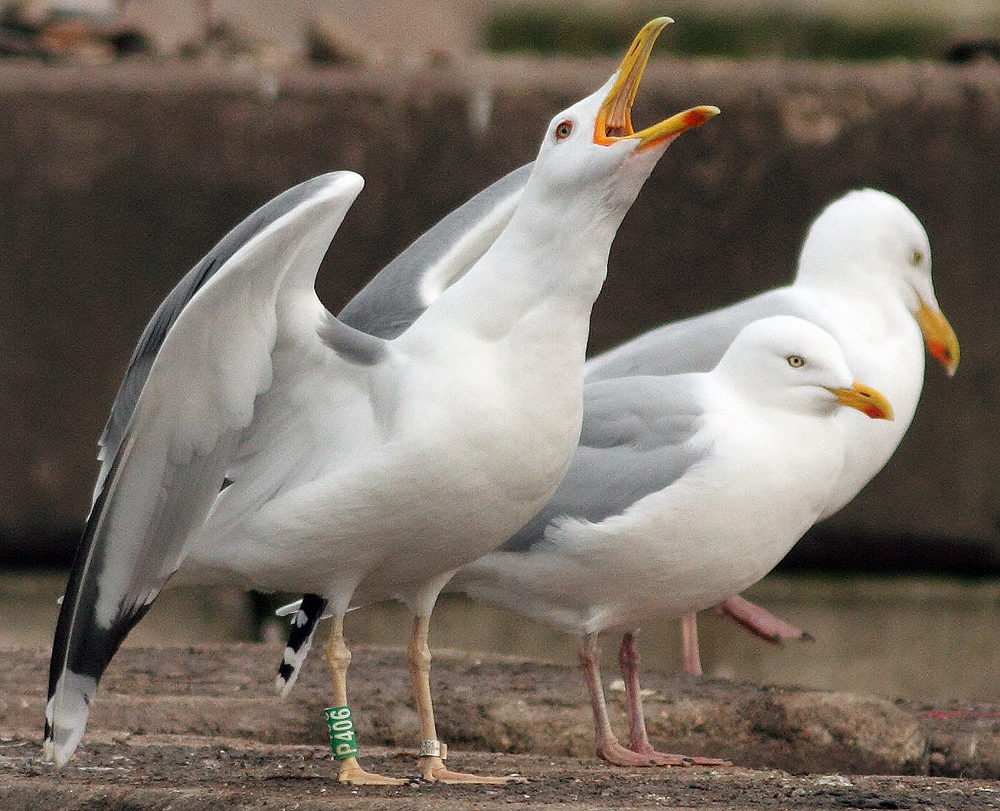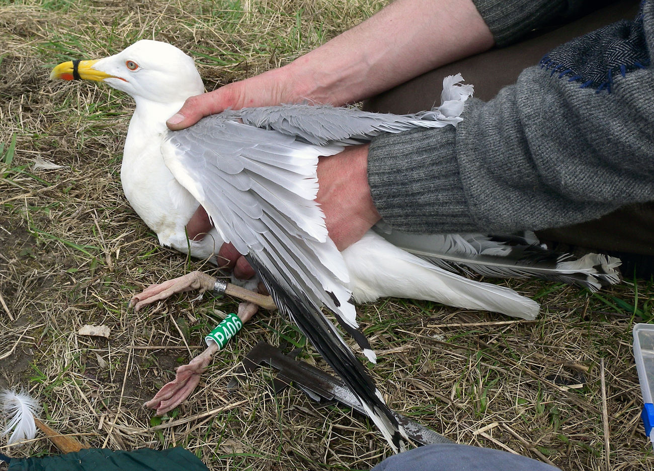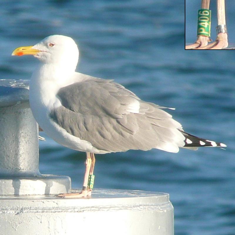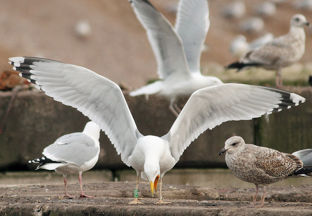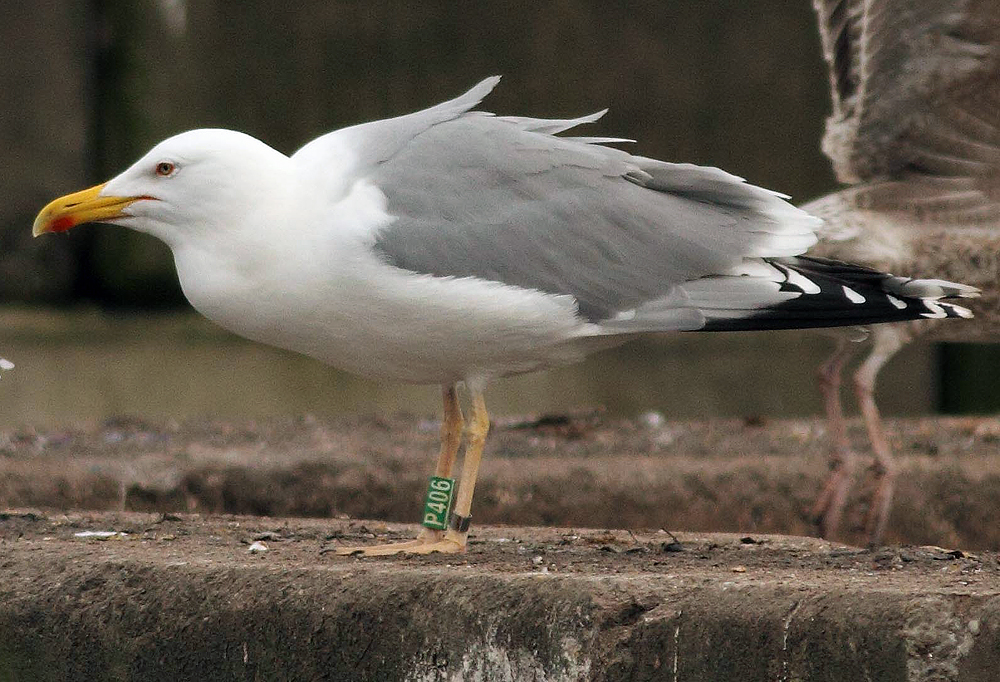below: Larus argentatus sensu lato P406 adult, January 06 2013, Amsterdam, the Netherlands. Picture: E. Schuller.