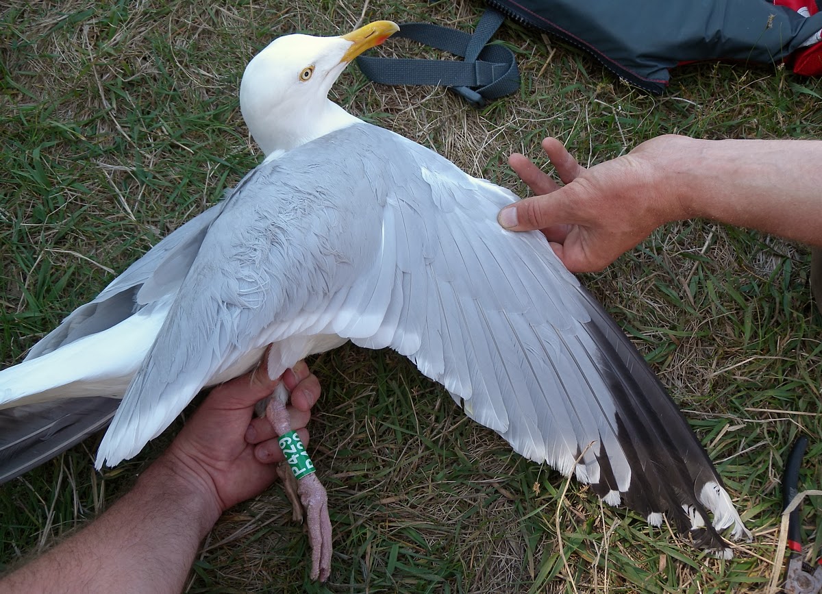 below: Larus argentatus sensu lato P429 adult, Juny 2013, Zastow Karczmiski, Poland. Picture: Łukasz Bednarz. In the colony.