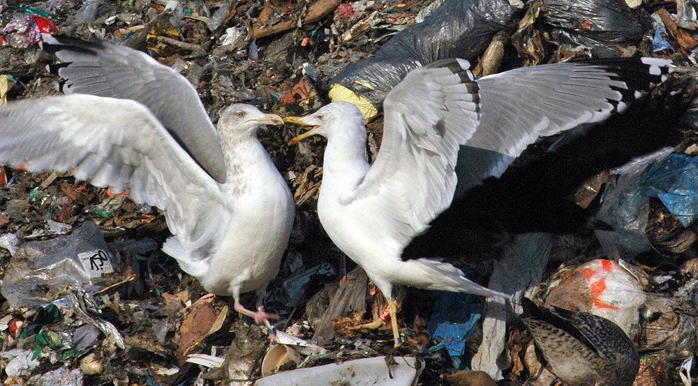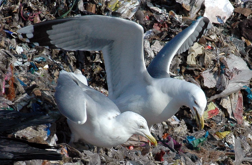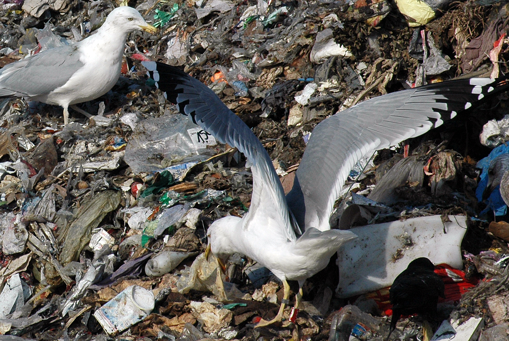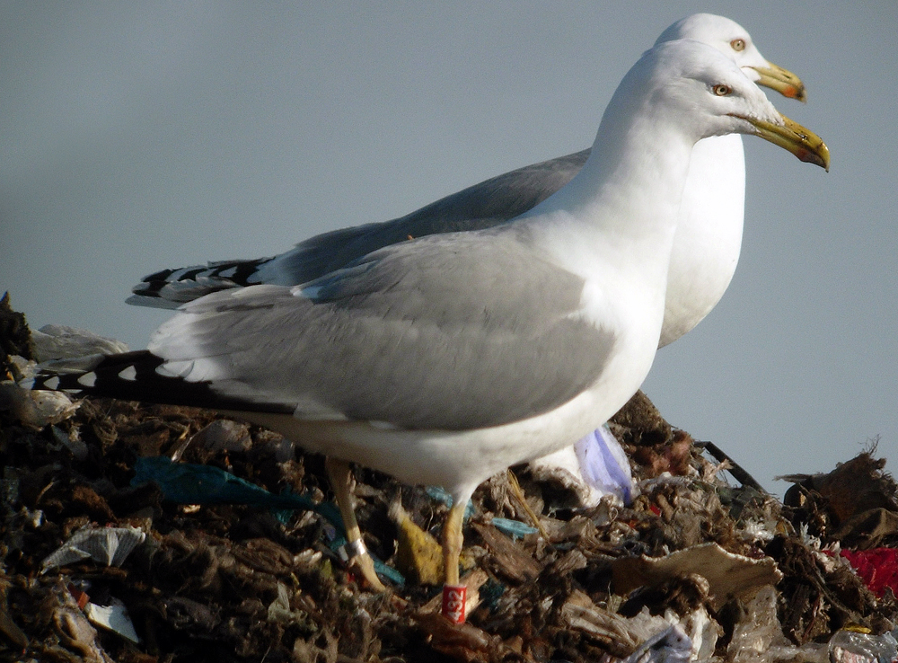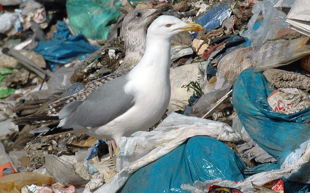 below: cachinnans hybrid 19CY P432 February 16 2010, Deponie Pohlsche Heide - Minden, Germany (52°23'05N, 08°46'45E). Picture: Armin Deutsch. White-headed by February.
