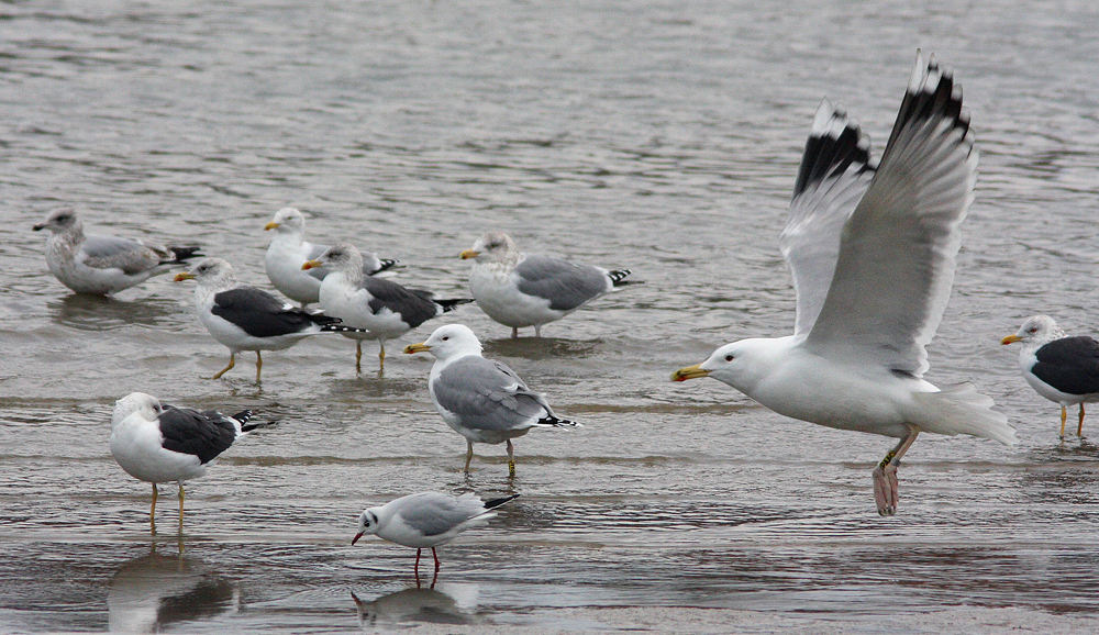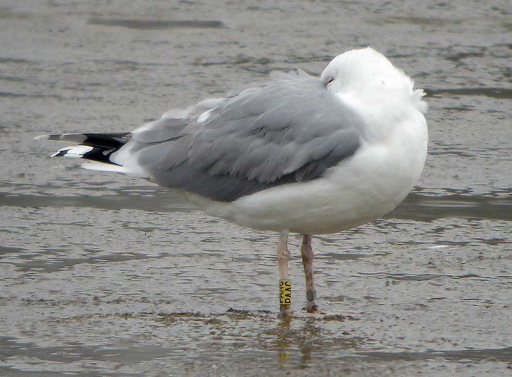 Larus cachinnans adult PAAC January 2011 & January 2012, Boulogne-sur-Mer, NW France, Picture: Jean-Michel Sauvage. Bird trapped at the nest, as breeding male cachinnans in Poland. Ring:GDANSK DN 25251 (YELLOW PAAC). Ringing data: Finding data: Date: 14.01.2011 31.12.2011 08.01.2012 Distance: 1266 km, below: cachinnans adult PAAC 08 January 2012. Photo manipulated - PAAC standing and flying. below: cachinnans adult PAAC 14 January 2011. |