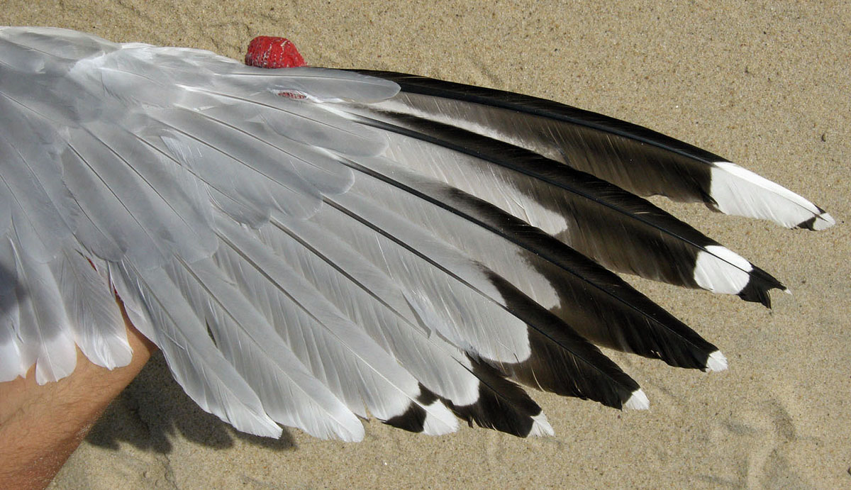 black on both webs connected, forming band, black on outer web deeper than inner |