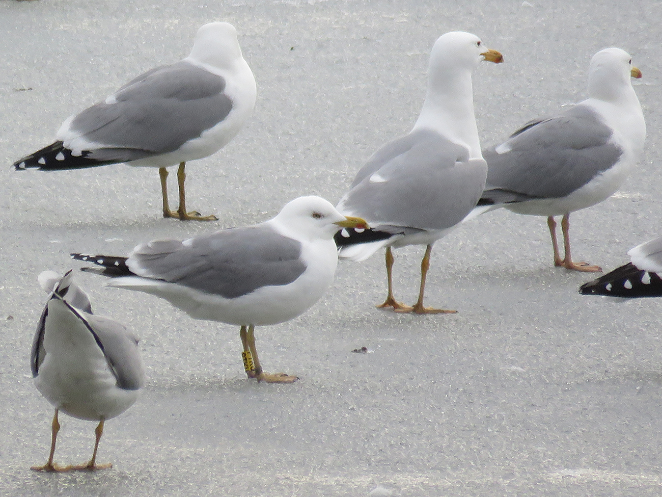 Larus cachinnans PTKU 5CY-9CY, March 2019 - March 2023, Chizhovka - Minsk, Belarus. Picture: Irina Samusenko. Metal rum ES17764 and y-PTKU, Caspian Gull type ringed as pullus on June 30 2015 at Gull colony Bolshoye Boloto, Ivanovo Oblast, Russia (56°30.39N 42°15.39E). Recoveries: