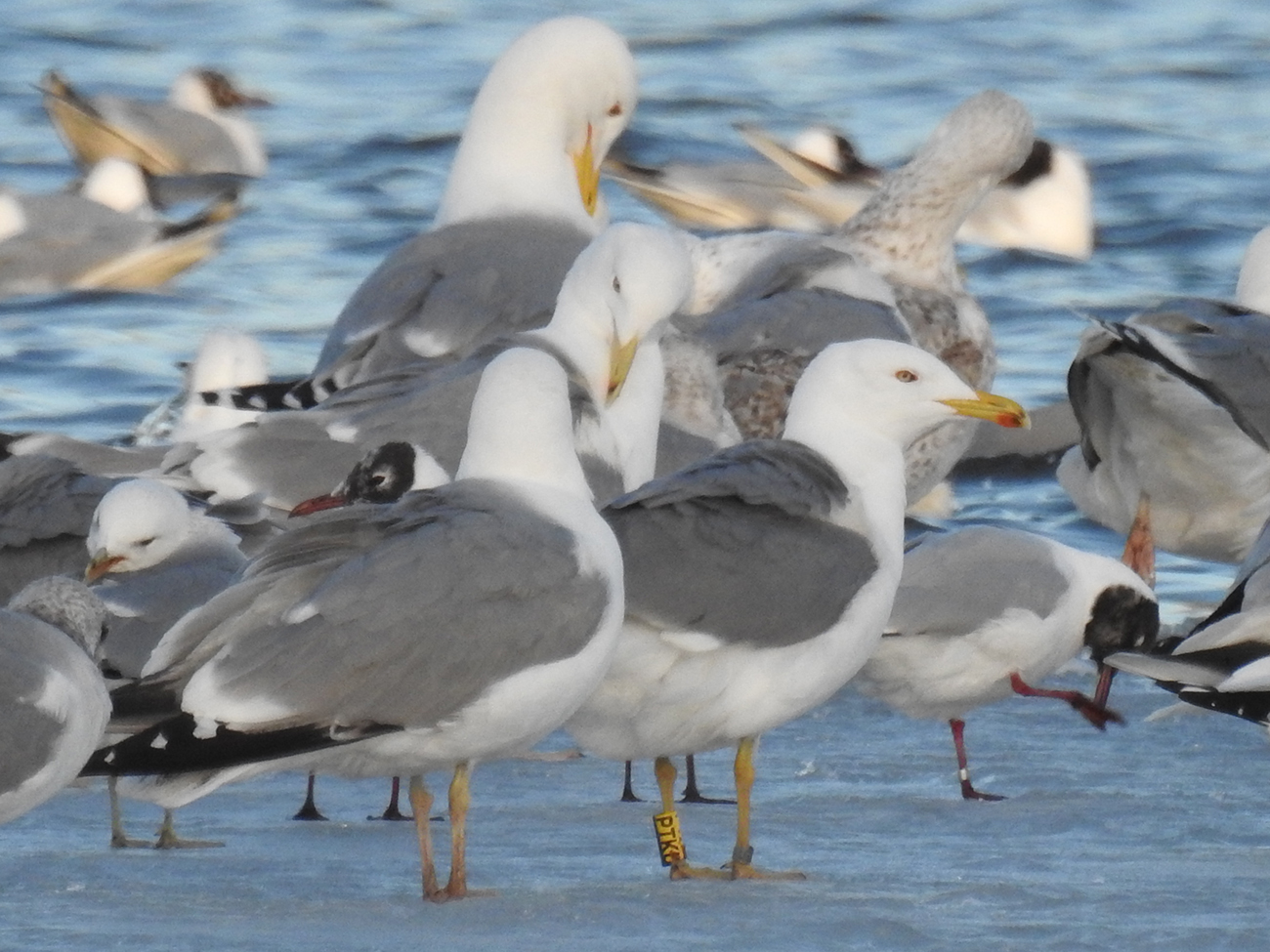 below: Larus cachinnans PTKU 9CY, March 18 2023, Chizhovka - Minsk, Belarus. Picture: Irina Samusenko. Returning bird at the Chizhovskoje Reservoir is in Minsk district, Belarus (53°50.30N 27°36.33E).
