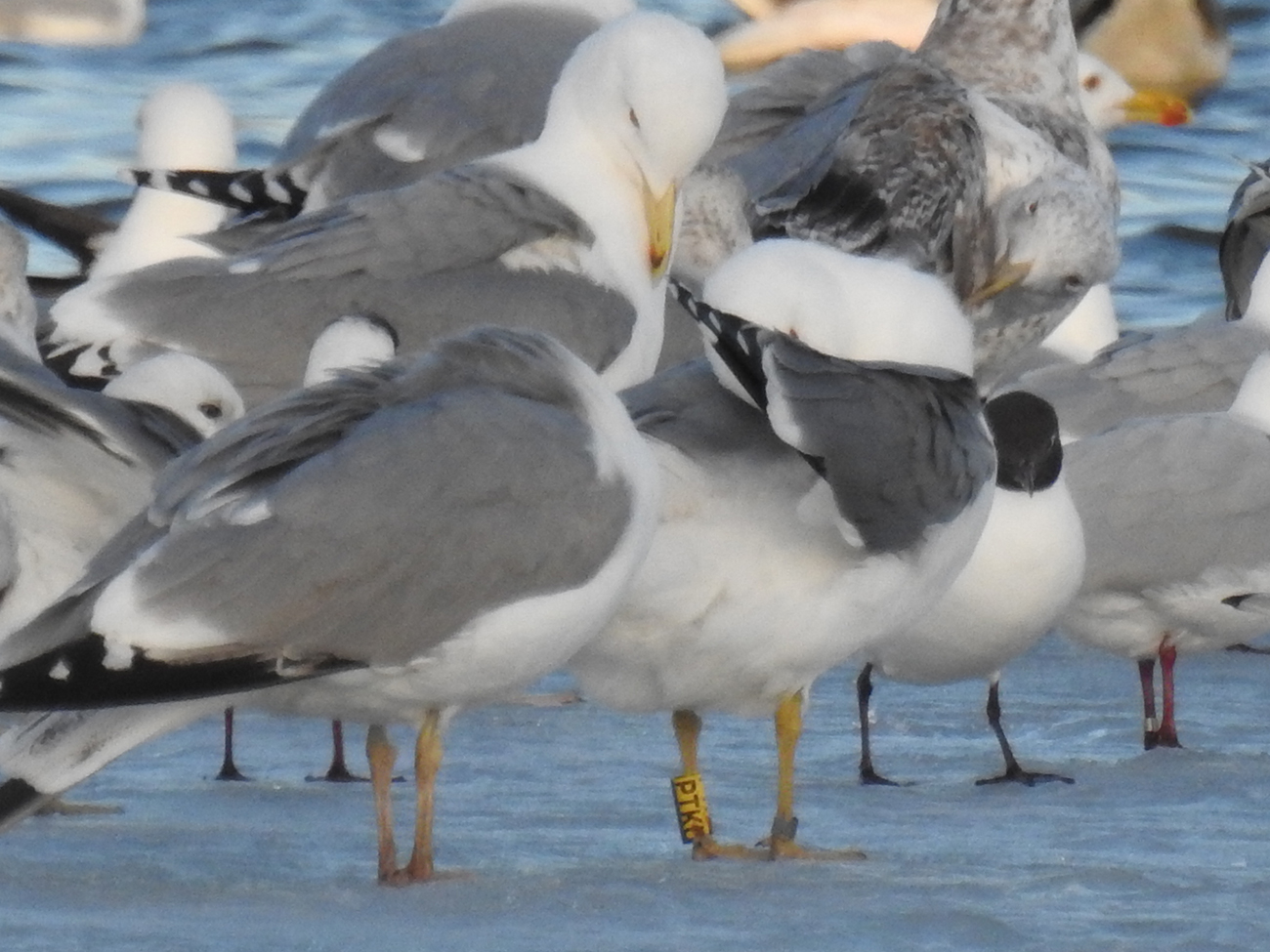 below: Larus cachinnans PTKU 7CY, March 20 2021, Chizhovka - Minsk, Belarus. Picture: Irina Samusenko. Returning bird at the Chizhovskoje Reservoir is in Minsk district, Belarus (53°50.30N 27°36.33E).