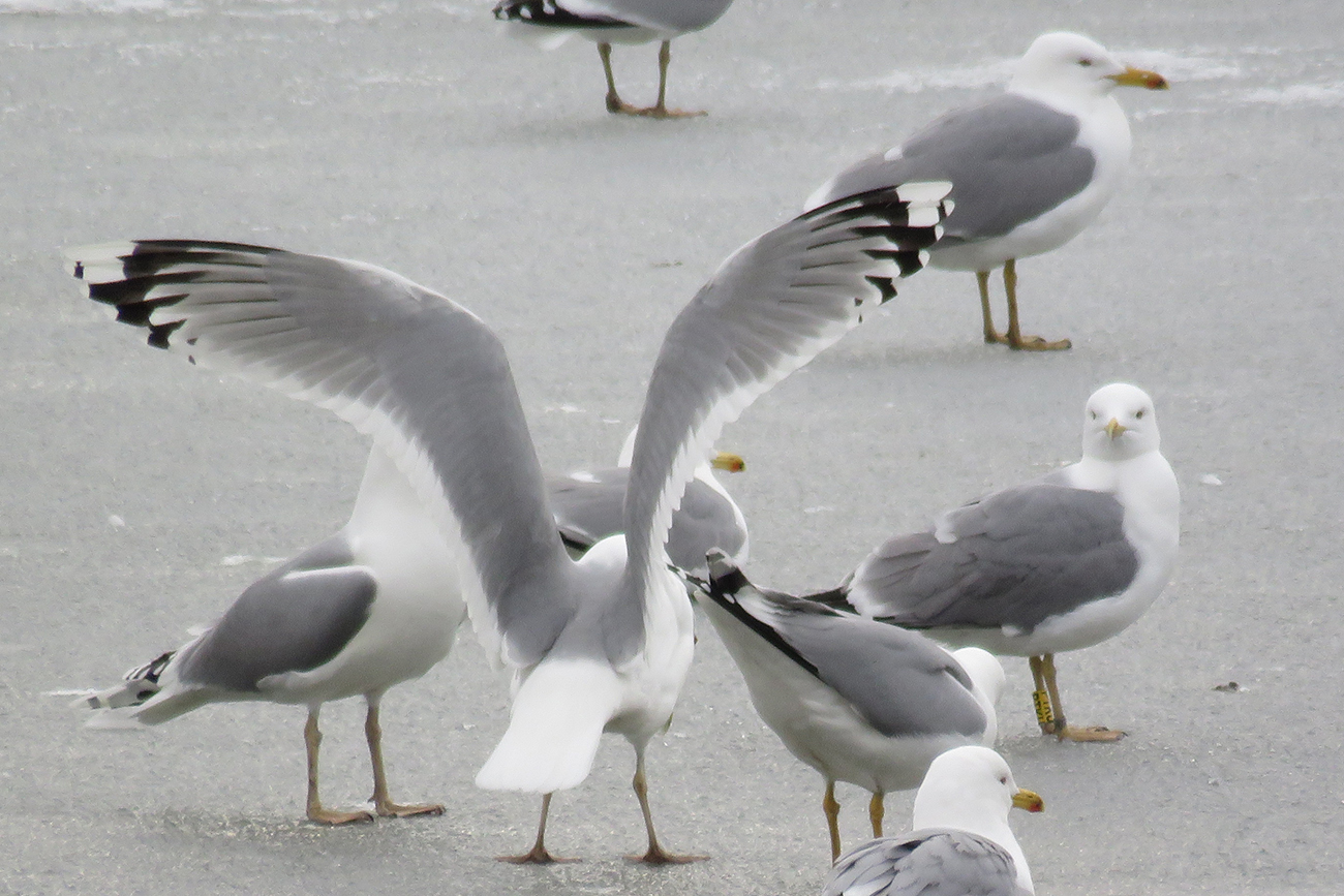 below: Larus cachinnans PTKU 5CY, March 17 2019, Chizhovka - Minsk, Belarus. Picture: Irina Samusenko. The Chizhovskoje Reservoir is in Minsk district, Belarus (53°50.30N 27°36.33E).
