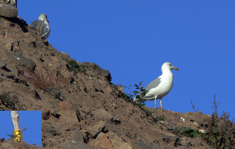 Larus cachinnans adult male PUBA October 02 2011, Minsk landfill, Belarus. Picture: Dmitry Goncharov. Bird ringed yellow PUBA and UKK L-009696, ringed as breeding adult male at the nest on June 07 2010 at Kanev reserve Balyko-Schuchinka Ukraine (49,95 31,15). Now in the rooftop breeding colony in Minsk. |