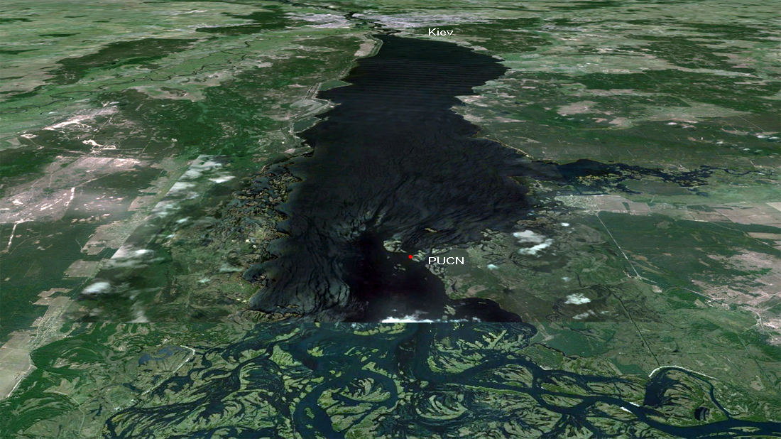 below: from the air, looking south over breeding location for PUCN, north part of Kiev reservoir. In the background Kiev. Second image: habitat.