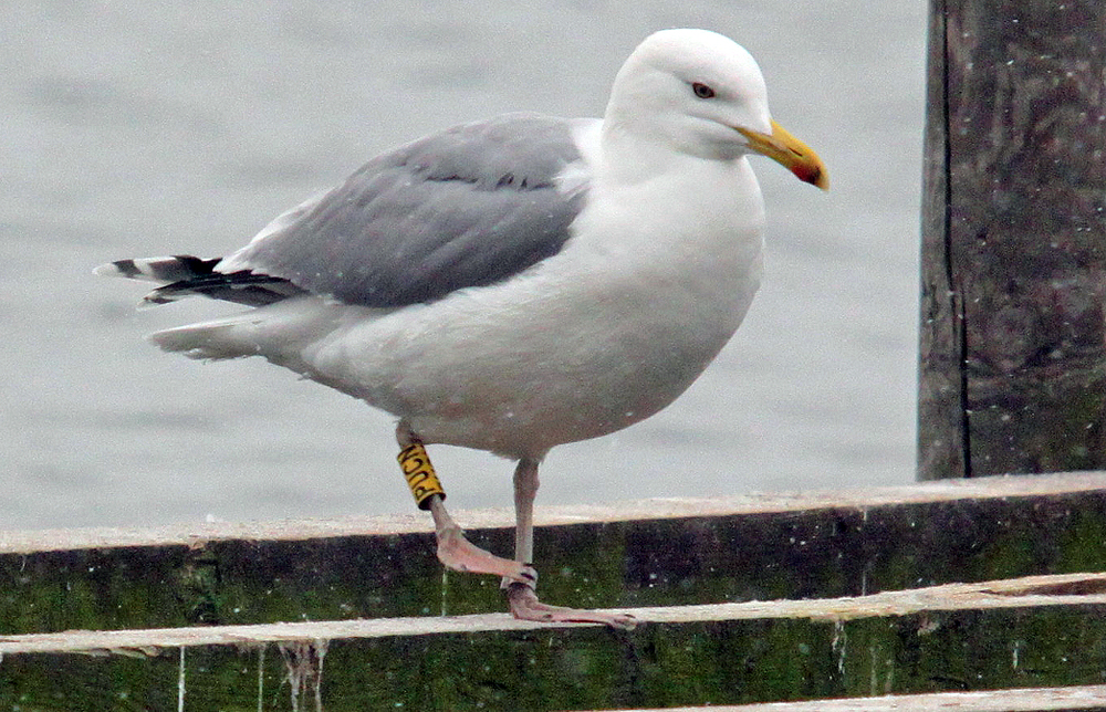 Larus cachinnans adult PUCN January 29 2012, Steinhuder Midland, Germany. Picture: Armin Kreusel. Yellow PUCN and Kiev metal ring (UKK) L-009404, cachinnans ringed as adult breeding female on May 19 2010 in Kyivske reservoir, Kosachivka, Ukraine (51°06'00"N, 30°31'00"E).