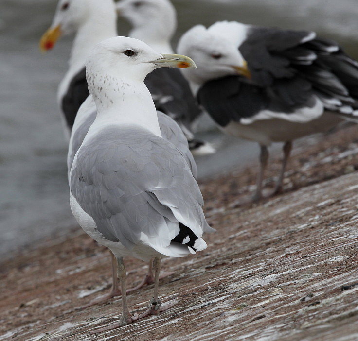 Larus cachinnans adult UKK L-? September 10-20 2010, Preila Pier - Neringa Spit, Lithuania. Picture: Chris Gibbins. P7/-. Bird ringed in Ukraine. Dark eye and parallel greeny-yellow bill. An annual visitor to the pier. |