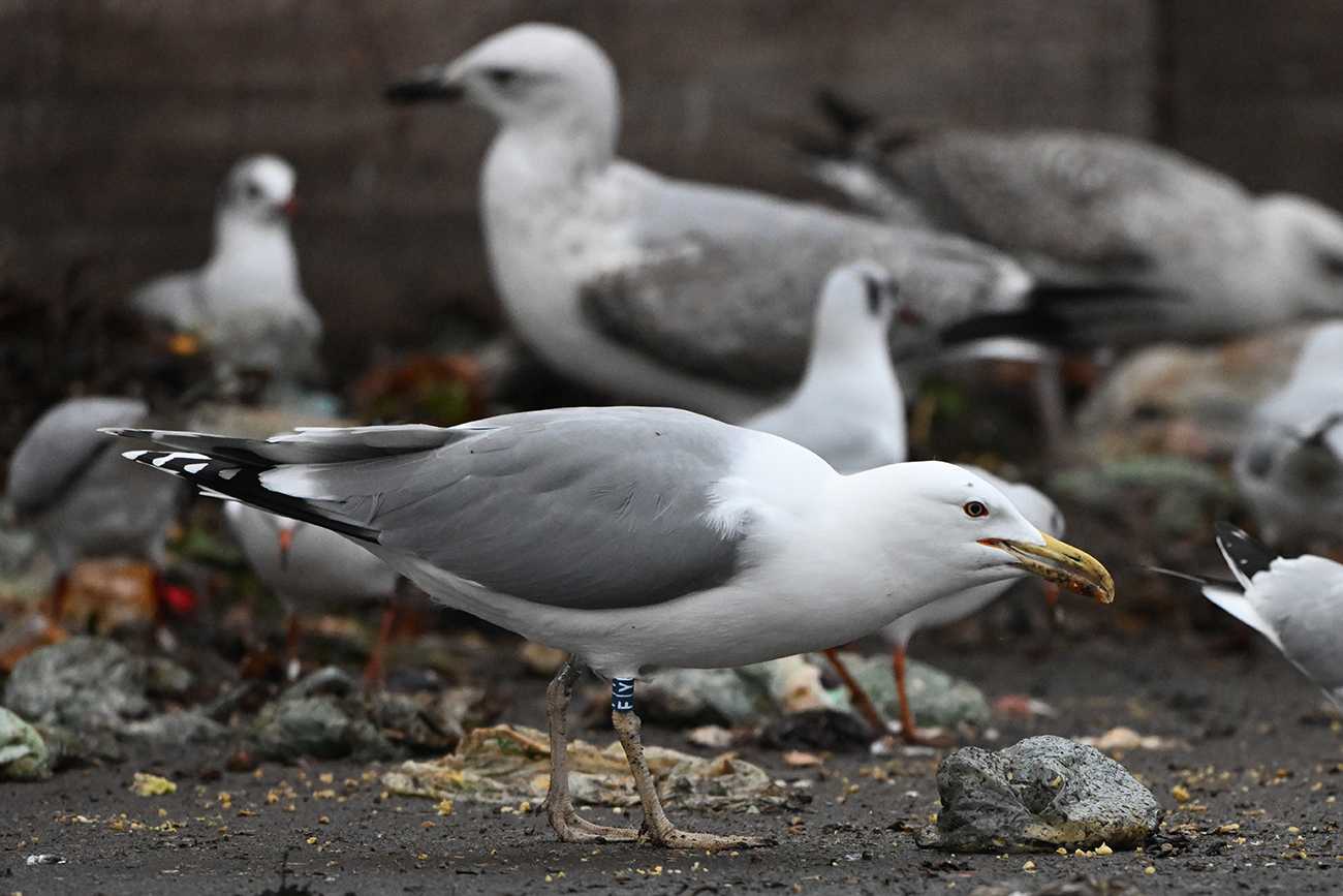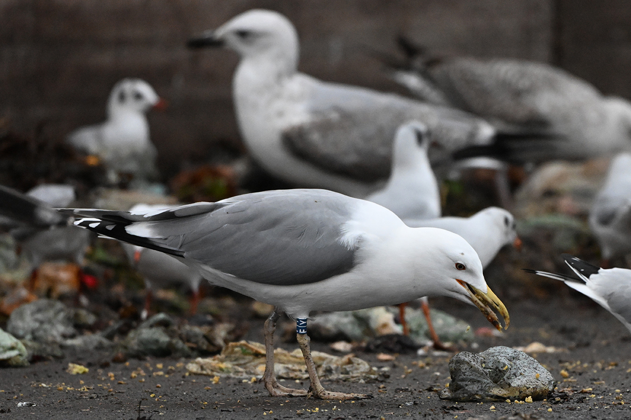below: Caspian Gull cachinnans F|Y 4CY, December 23 2024, Almere - De Vaart, the Netherlands. Picture: Thijs Horst.