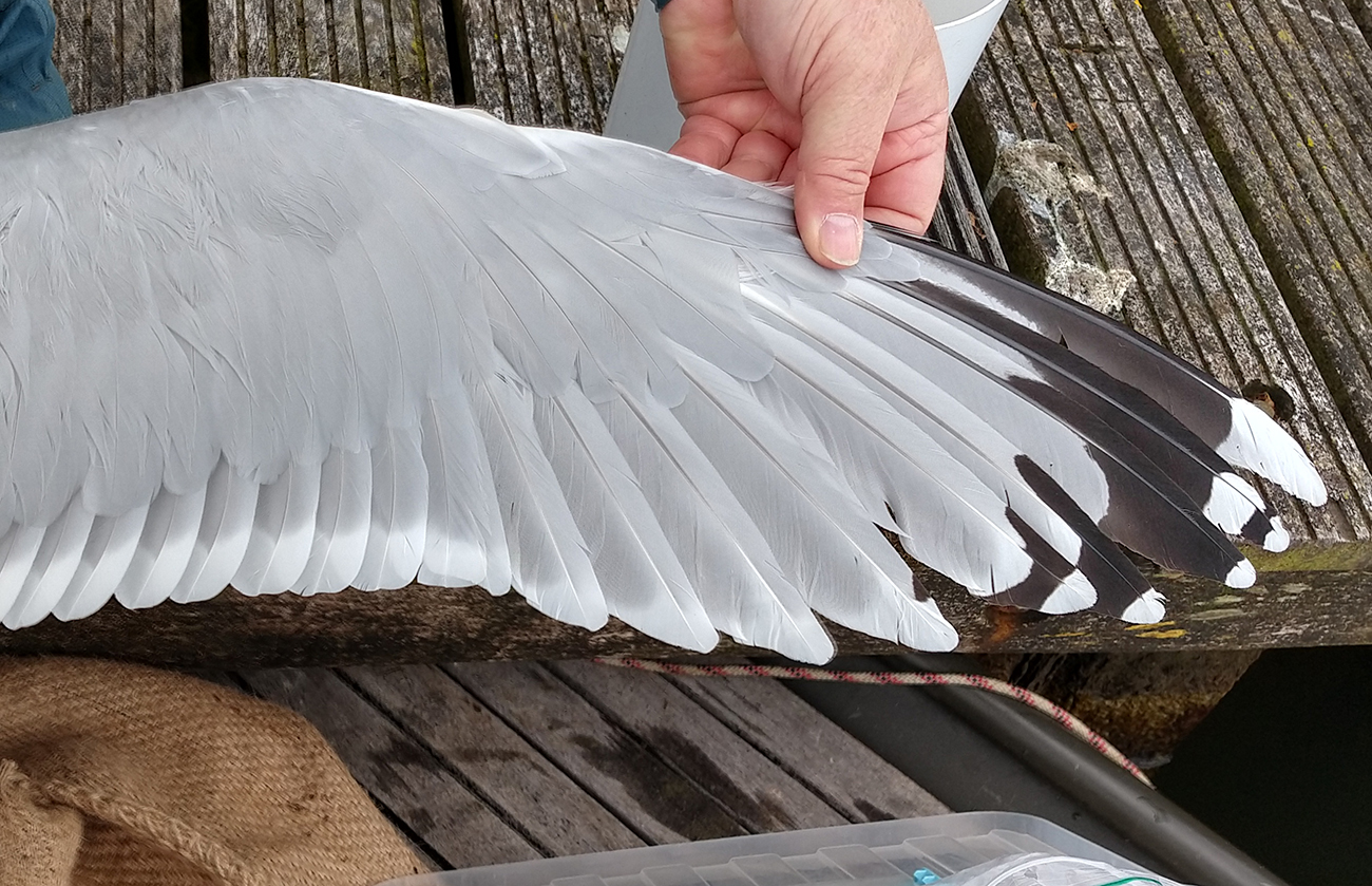 below: Herring Gull argenteus B / JA adult, June 04 2025, Almere - De Vaart, the Netherlands. Picture: Thijs Horst.