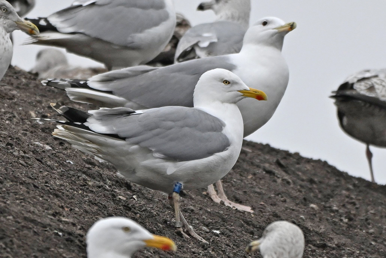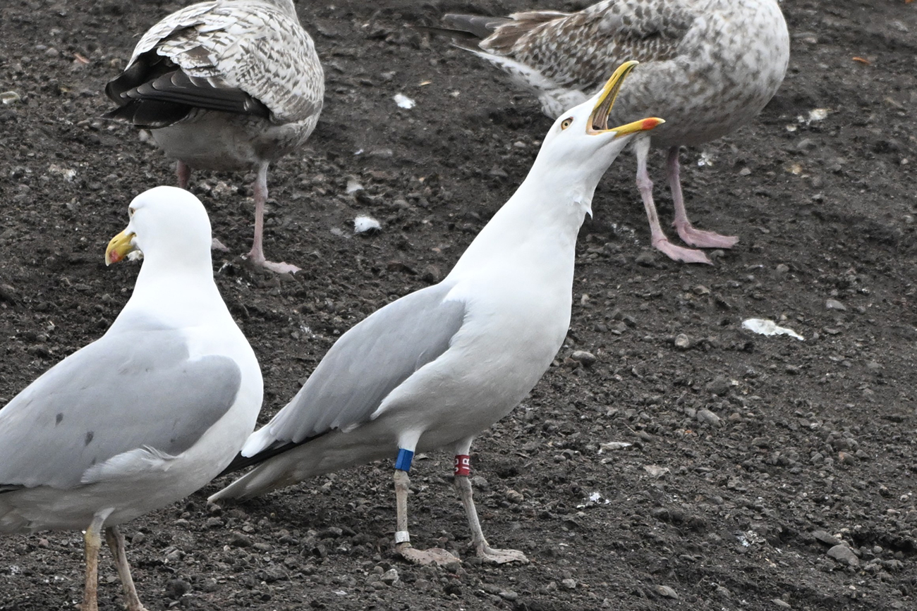 below: Herring Gull argenteus B / JB adult, April 28 2025, colony Lelystad, the Netherlands. Picture: Thijs Horst & Mars Muusse.