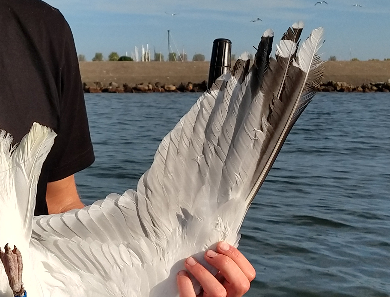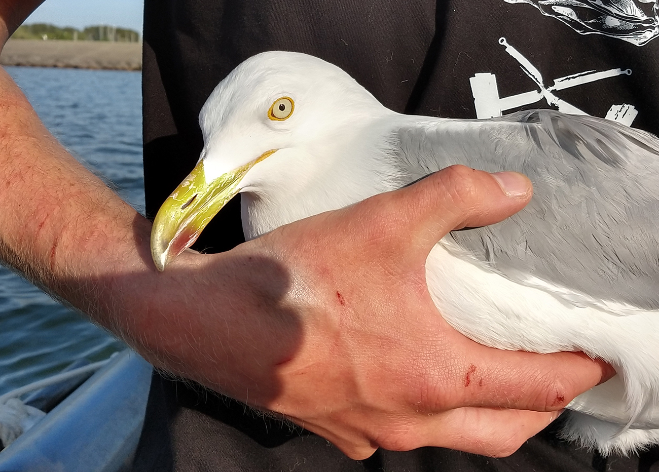 below: Herring Gull argenteus B / JF adult, July 08 2025, Almere - De Vaart, the Netherlands. Picture: Thijs Horst.