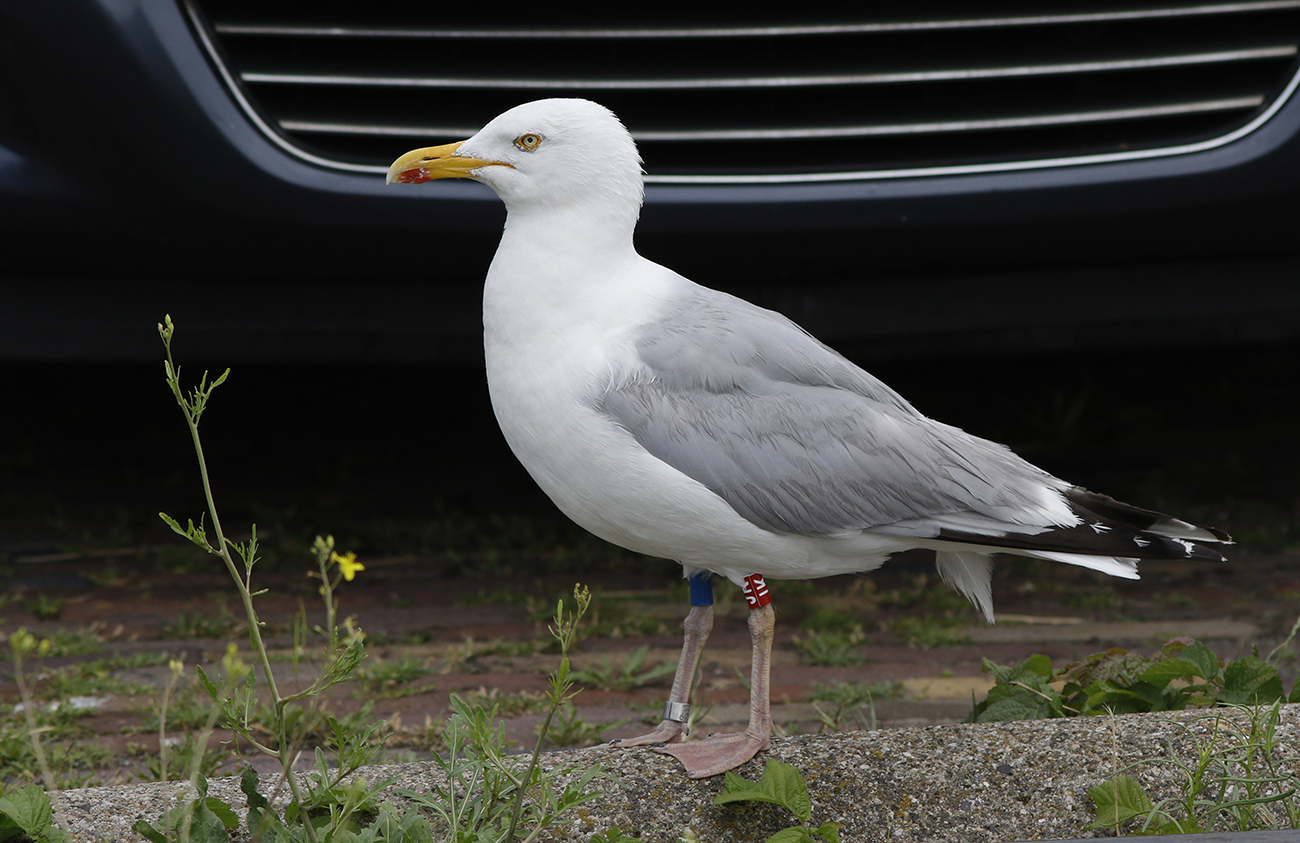 below: Herring Gull argenteus B / JK adult, July 25 2025, IJmuiden, the Netherlands. Picture: Mars Muusse.