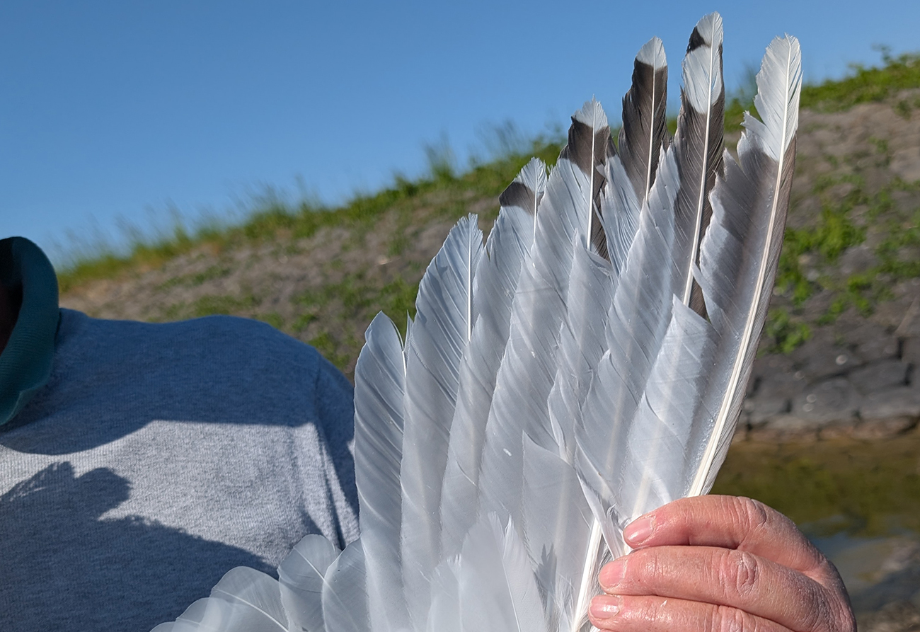 below: Herring Gull argenteus B / JM adult, June 29 2025, colony Lelystad, the Netherlands. Picture: Thijs Horst.