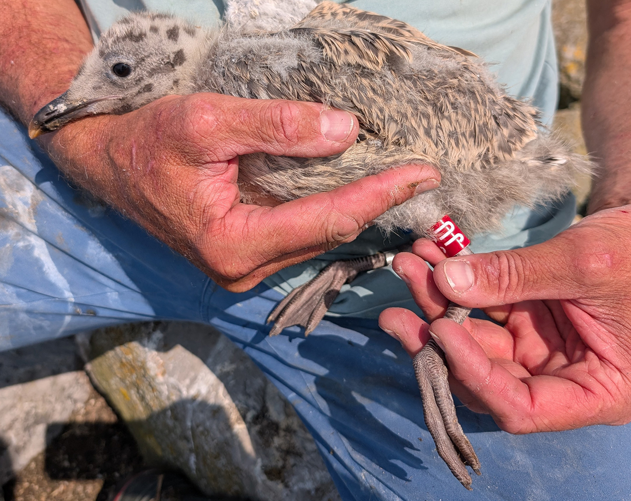 Herring Gull argenteus B / JU 1CY, 2025, colony Lelystad, the Netherlands. Picture: Thijs Horst.