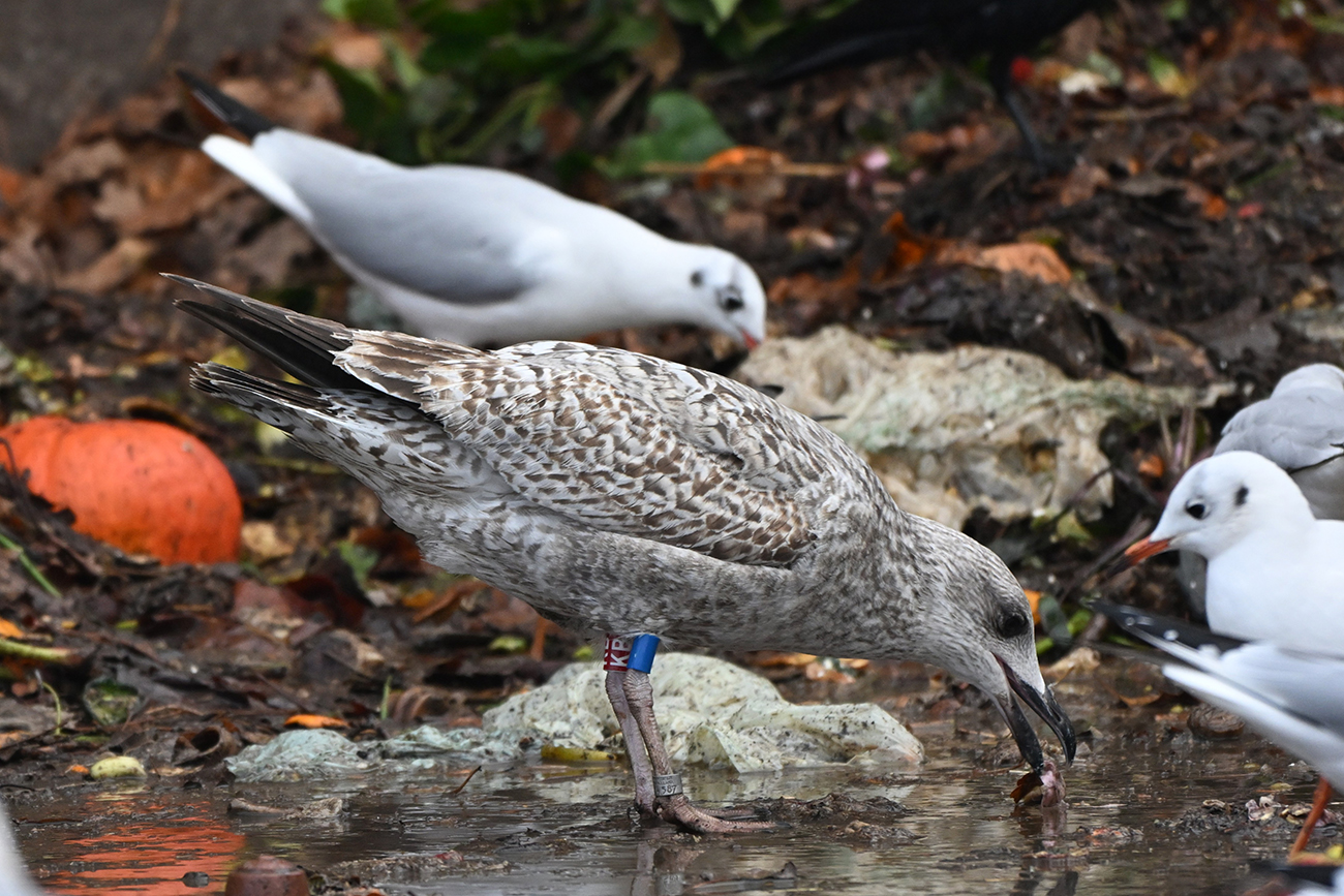below: Herring Gull argenteus B / KB 1CY, December 05 2025, Almere - De Vaart, the Netherlands. Picture: Thijs Horst.