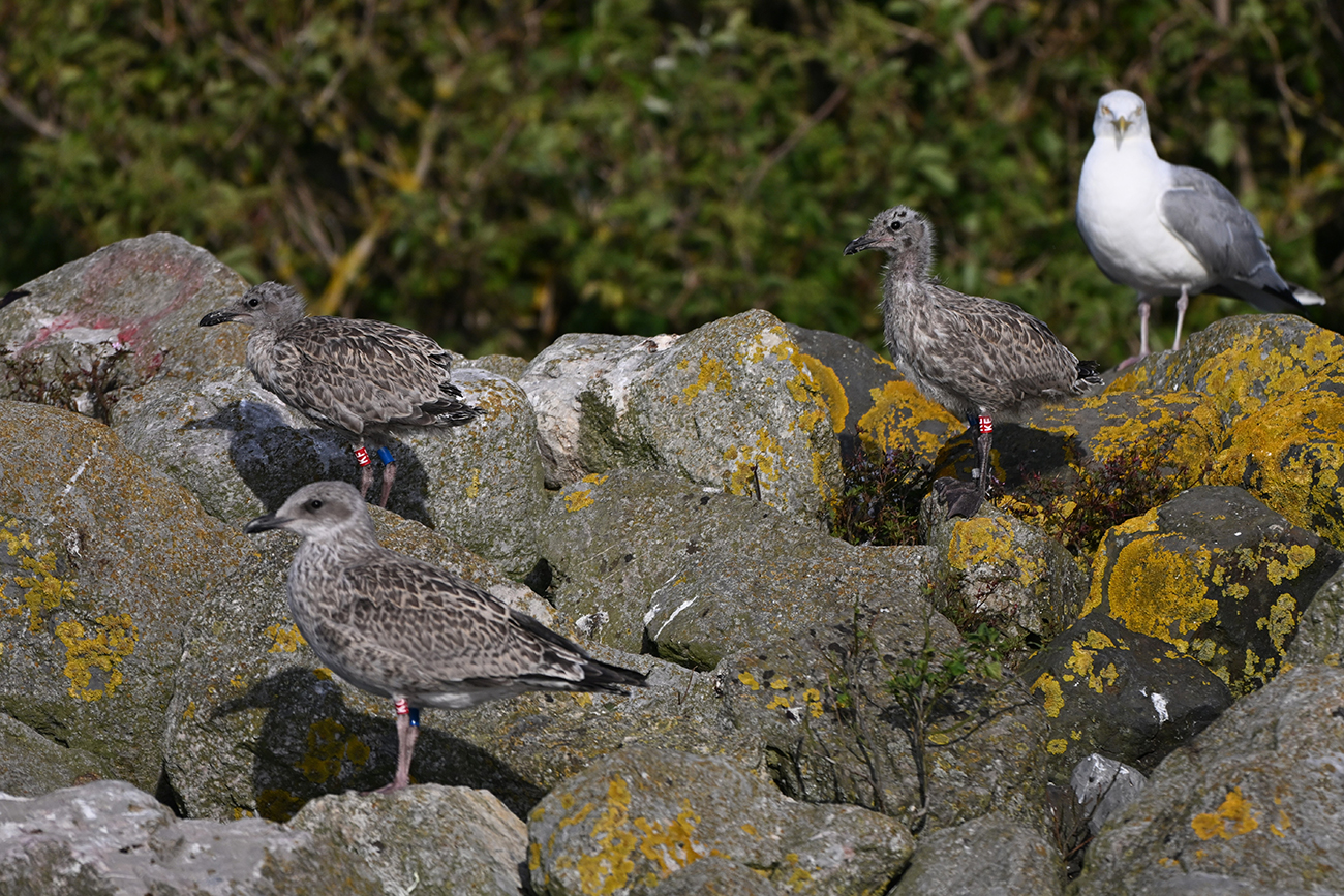 below: Herring Gull argenteus B / KG 1CY, July 09 2025, colony Lelystad, the Netherlands. Picture: Thijs Horst.
