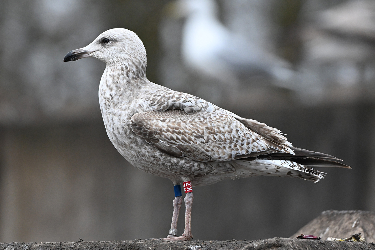 below: Herring Gull argenteus B / KZ 1CY, October 20 2025, Amsterdam, the Netherlands. Picture: Lou Spoor.