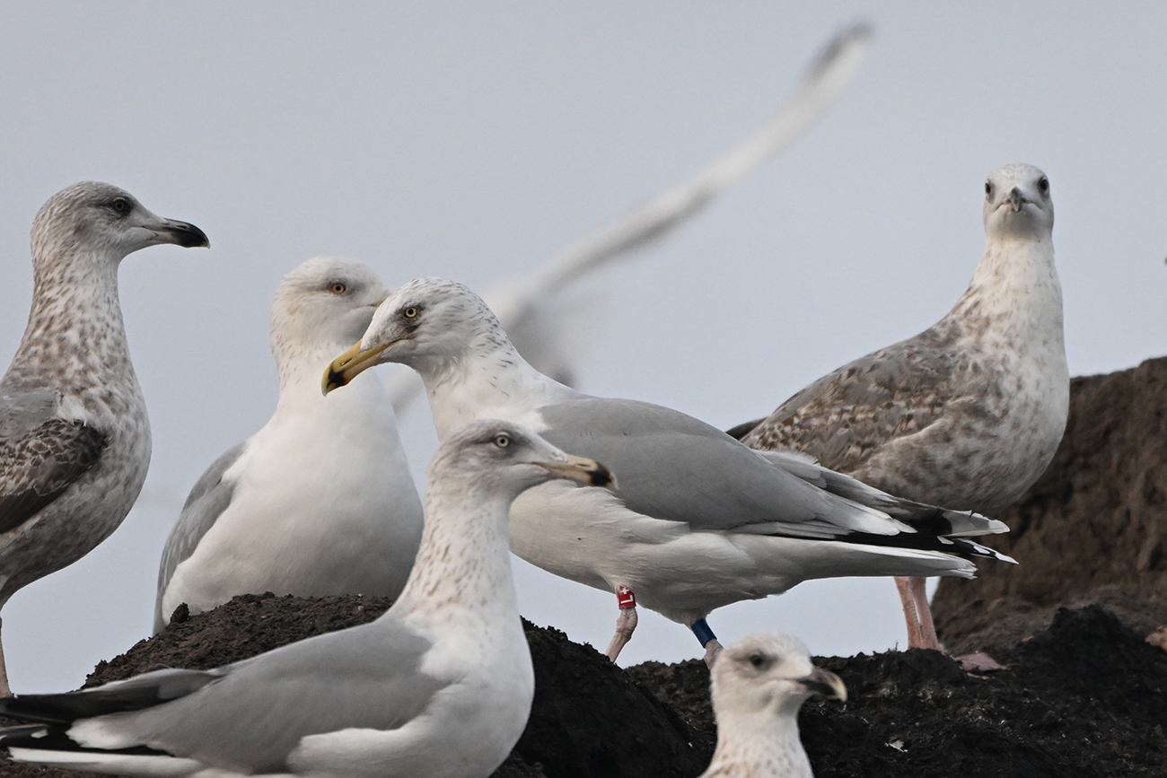below: Herring Gull argenteus B / L+ adult, March 08 2026, colony Lelystad, the Netherlands. Picture: Thijs Horst.