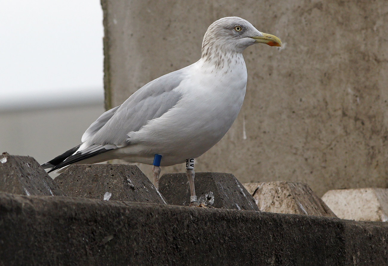 Female Herring Gull was NLA 6143017 (now, metal ring replaced), which was ringed as pullus Larus argentatus in 2007 at colony Moerdijk, the Netherlands. Ringer Roland-Jan Buijs.