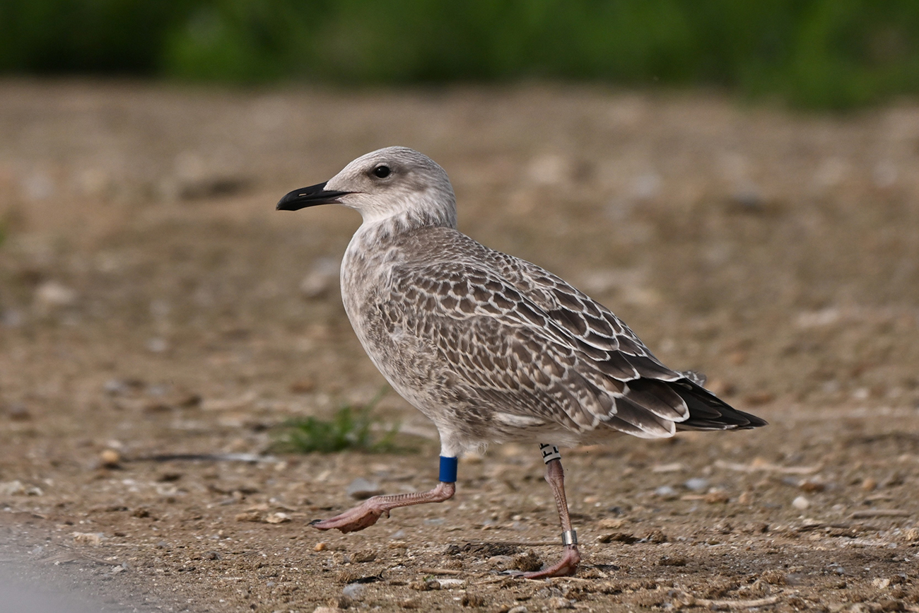 Tibia ring B/W-FF and metal ring Arnhem NLA 5.639.382 ringed as pullus Larus cachinnans on July 04 2025 at IJsselmeer (De Kreupel), the Netherlands. Ringer: Leon Kelder.