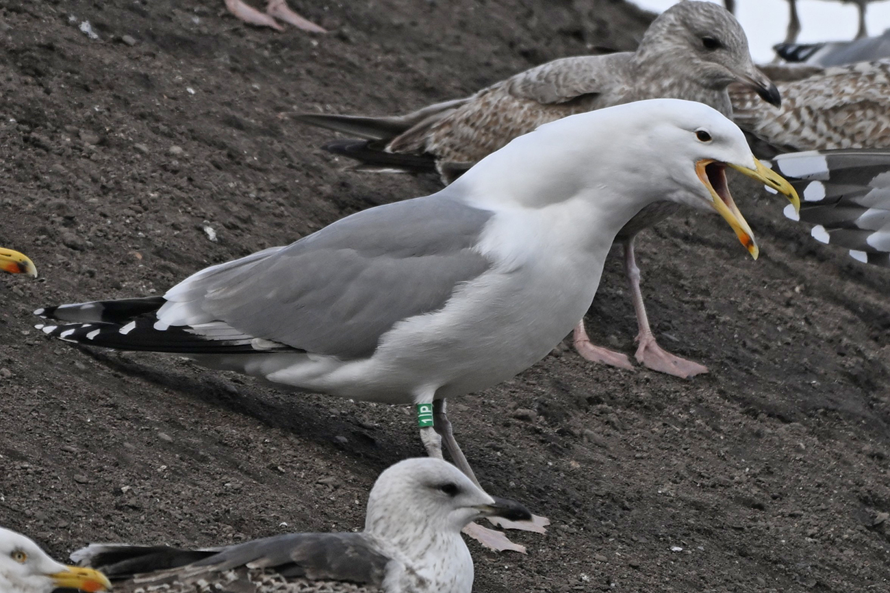 below: Caspian Gull cachinnans 1|P 2CY, July 28 2024, colony De Kreupel, the Netherlands. Picture: Thijs Horst & Mars Muusse.