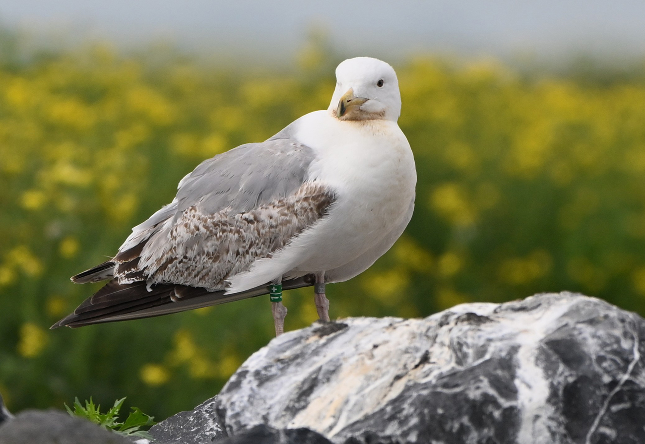 Tibia G-1|+ and metal NLA 5.629.649, ringed as pullus Larus cachinnans on May 12 2023 at De Kreupel, Holland (5247.00 N 513.00 E).