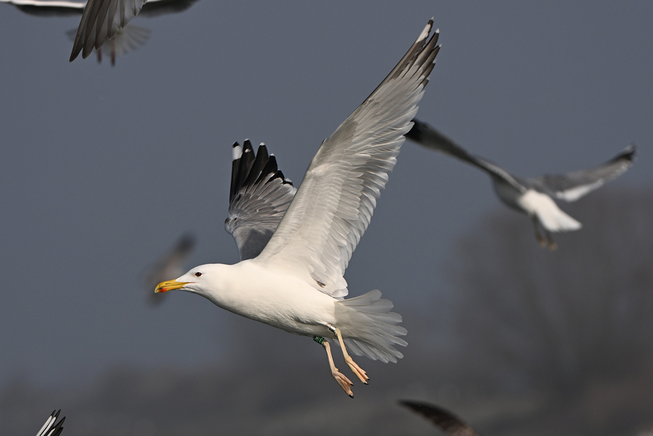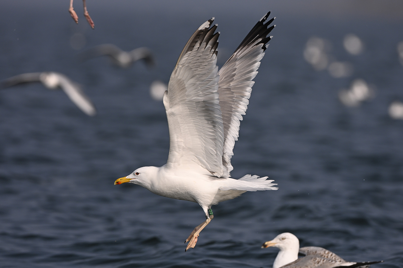 below: Caspian Gull cachinnans 3|K 2CY, April 18 2024, Almere - De Vaart, the Netherlands. Picture: Thijs Horst.