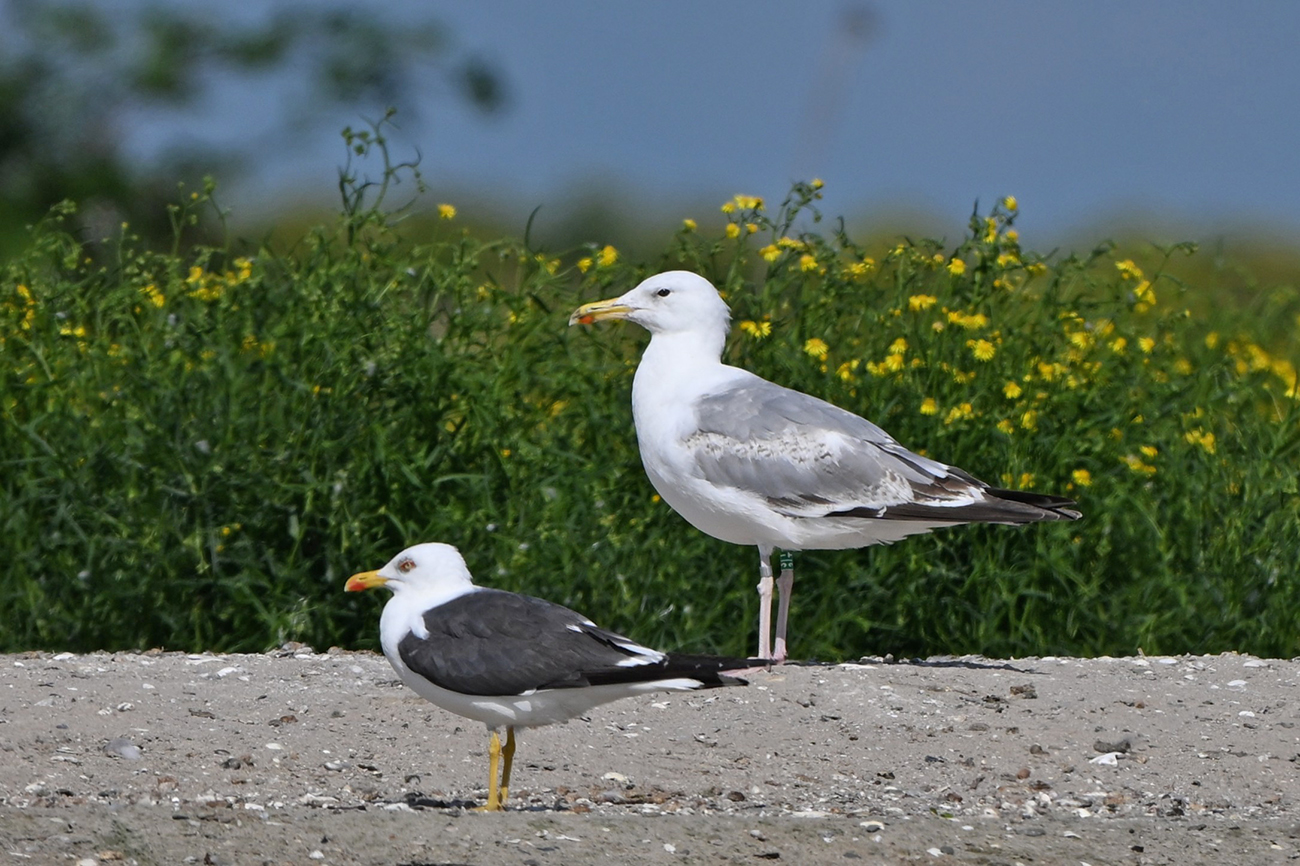 below: Caspian Gull cachinnans 3|T 3CY, July 13 2025, colony De Kreupel, the Netherlands. Picture: Thijs Horst & Mars Muusse.