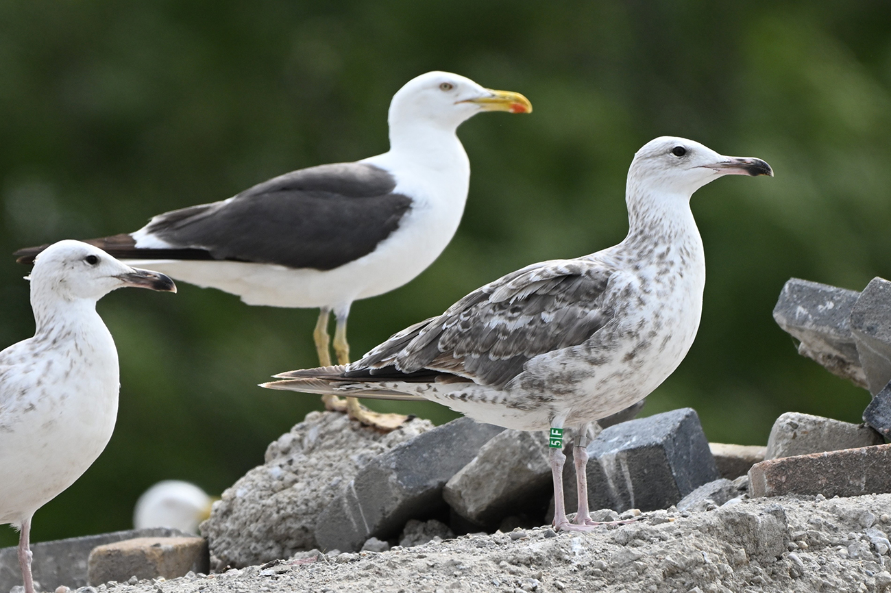 below: Caspian Gull cachinnans 5|F 1CY, July 19 2024, colony De Kreupel, the Netherlands. Picture: Thijs Horst & Mars Muusse.