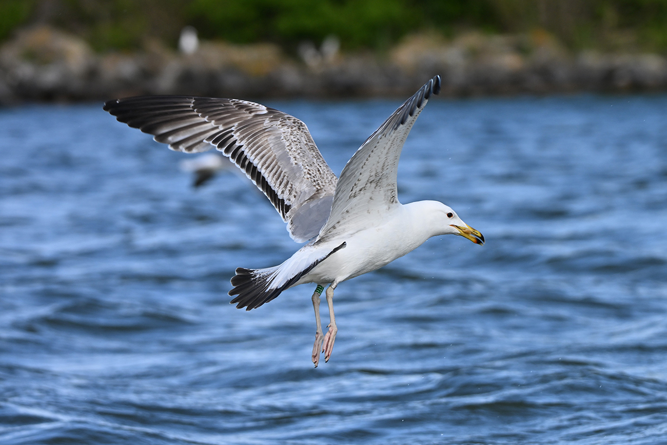 Tibia G-7|1 and metal NLA 5.556.420, ringed as pullus Larus cachinnans on May 27 2023 in nest 253 at Lelystad, the Netherlands (5230.00 N 525.00 E).