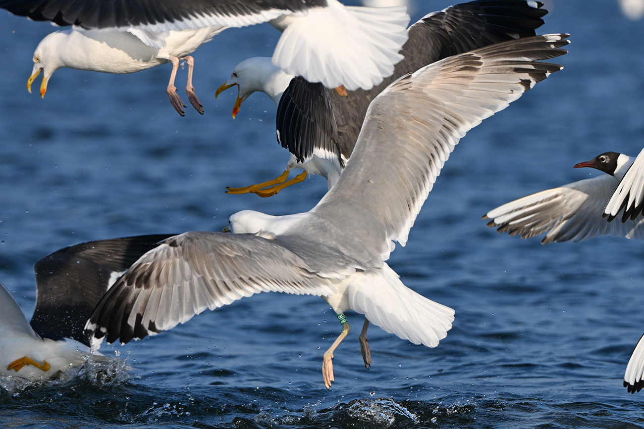 below: Caspian Gull cachinnans x Herring Gull argenteus hybrid 8|R 2CY, April 18 2024, Almere - De Vaart, the Netherlands. Picture: Thijs Horst.
