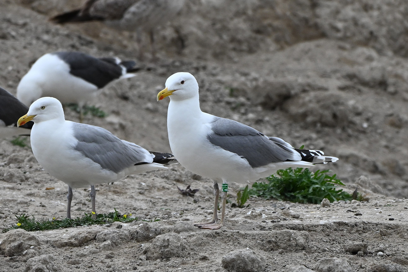 below: Caspian Gull cachinnans A|3 adult, April 12 2025, colony Lelystad, the Netherlands. Picture: Thijs Horst.