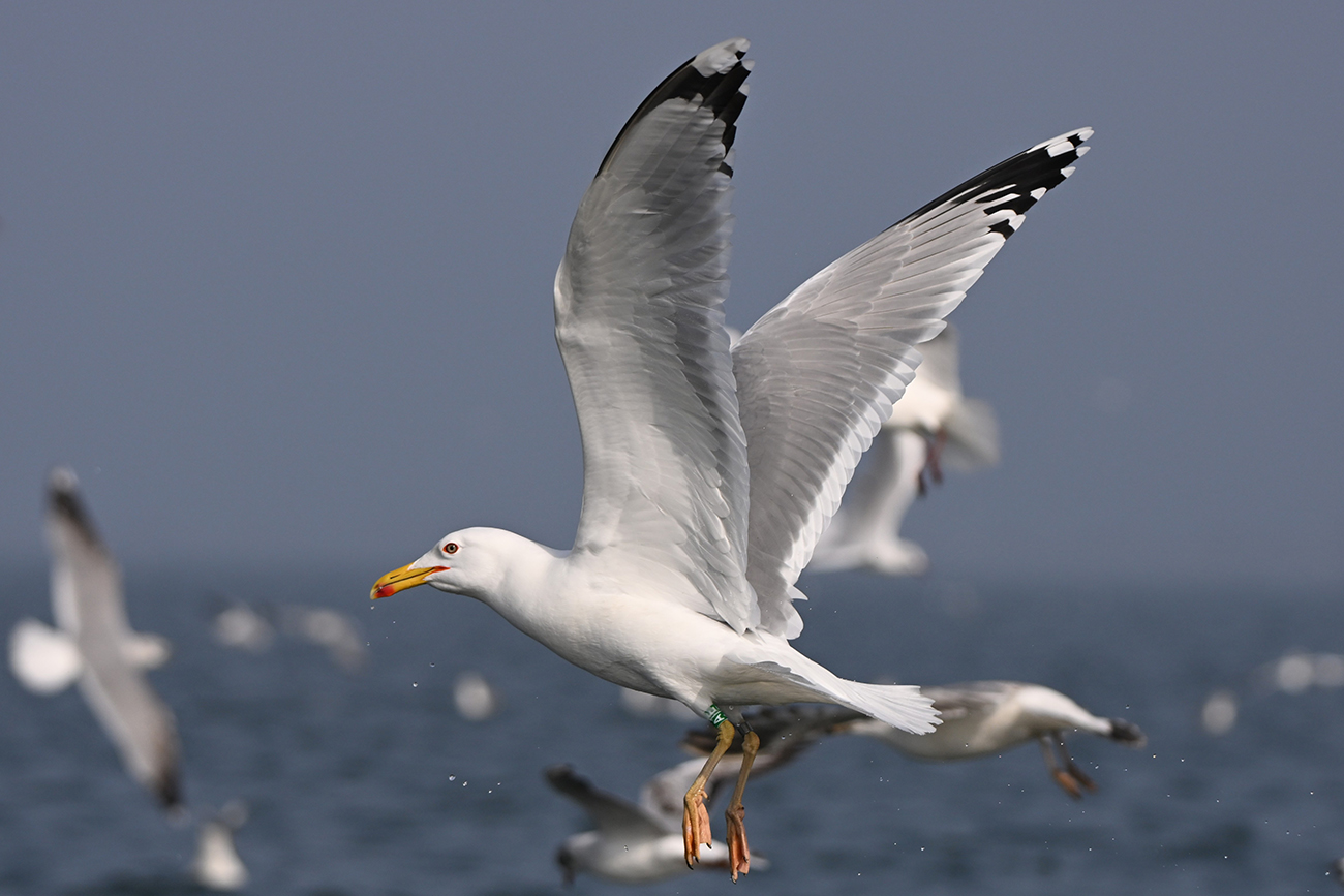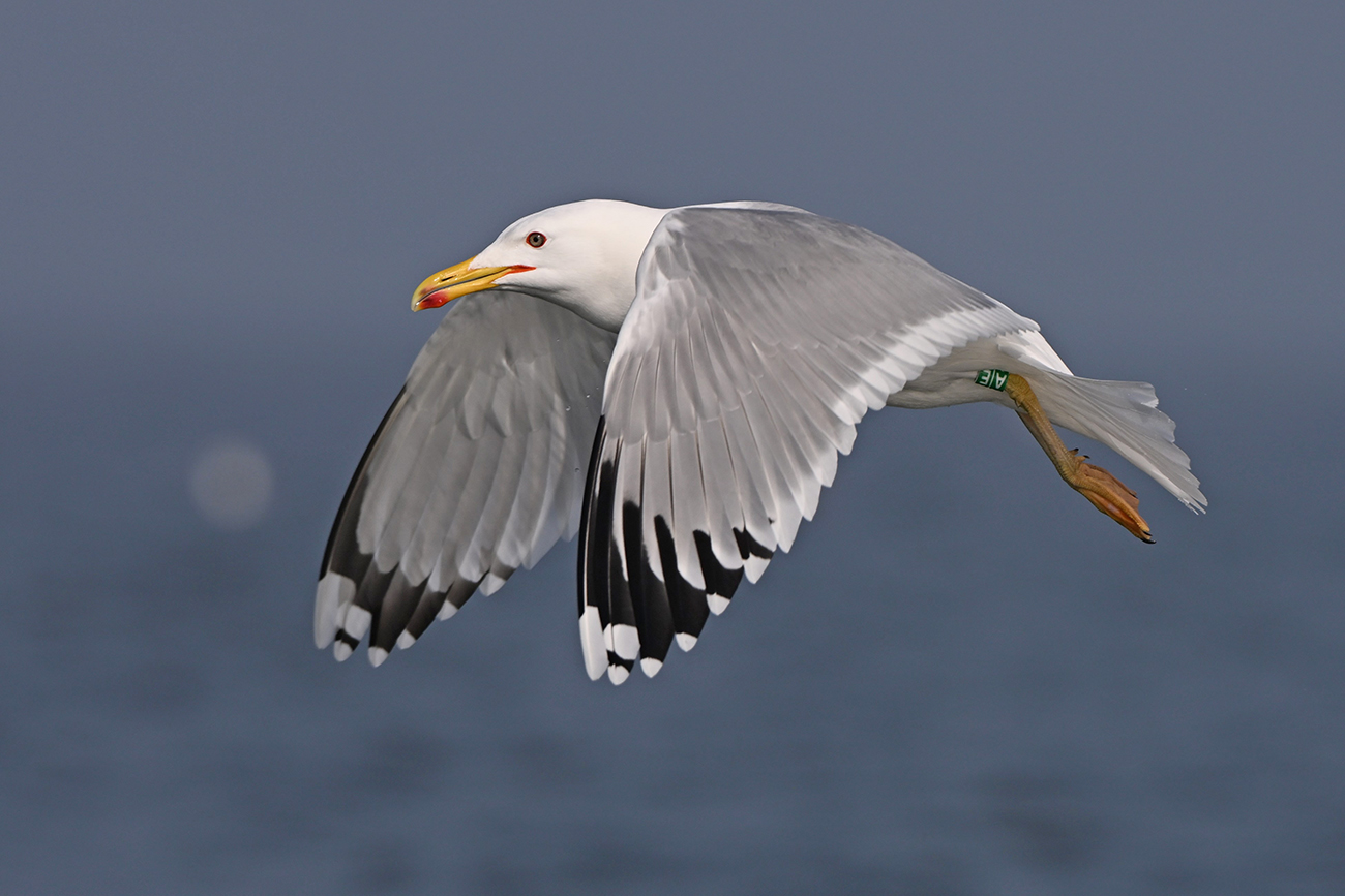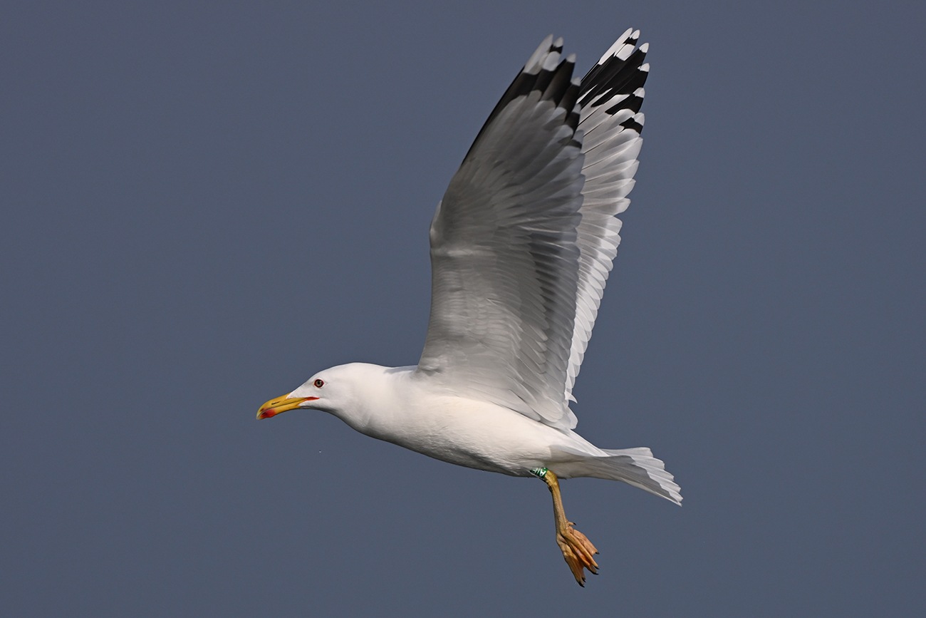 below: Caspian Gull cachinnans A|E adult, April 28 2025, Lelystad colony, the Netherlands. Picture: Thijs Horst & Mars Muusse.