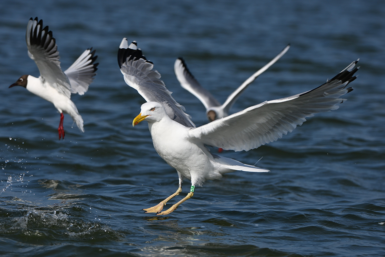 below: Caspian Gull cachinnans A|F adult, April 30 2024, Lelystad colony, the Netherlands. Picture: Thijs Horst & Mars Muusse.