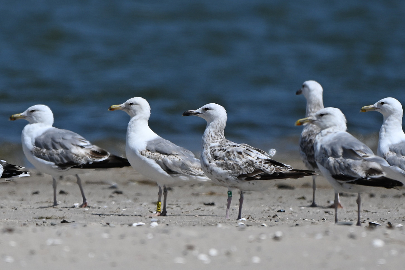 below: Caspian Gull cachinnans B|= 2CY, July 11 2025, Marker Wadden, the Netherlands. Picture: Thijs Horst.