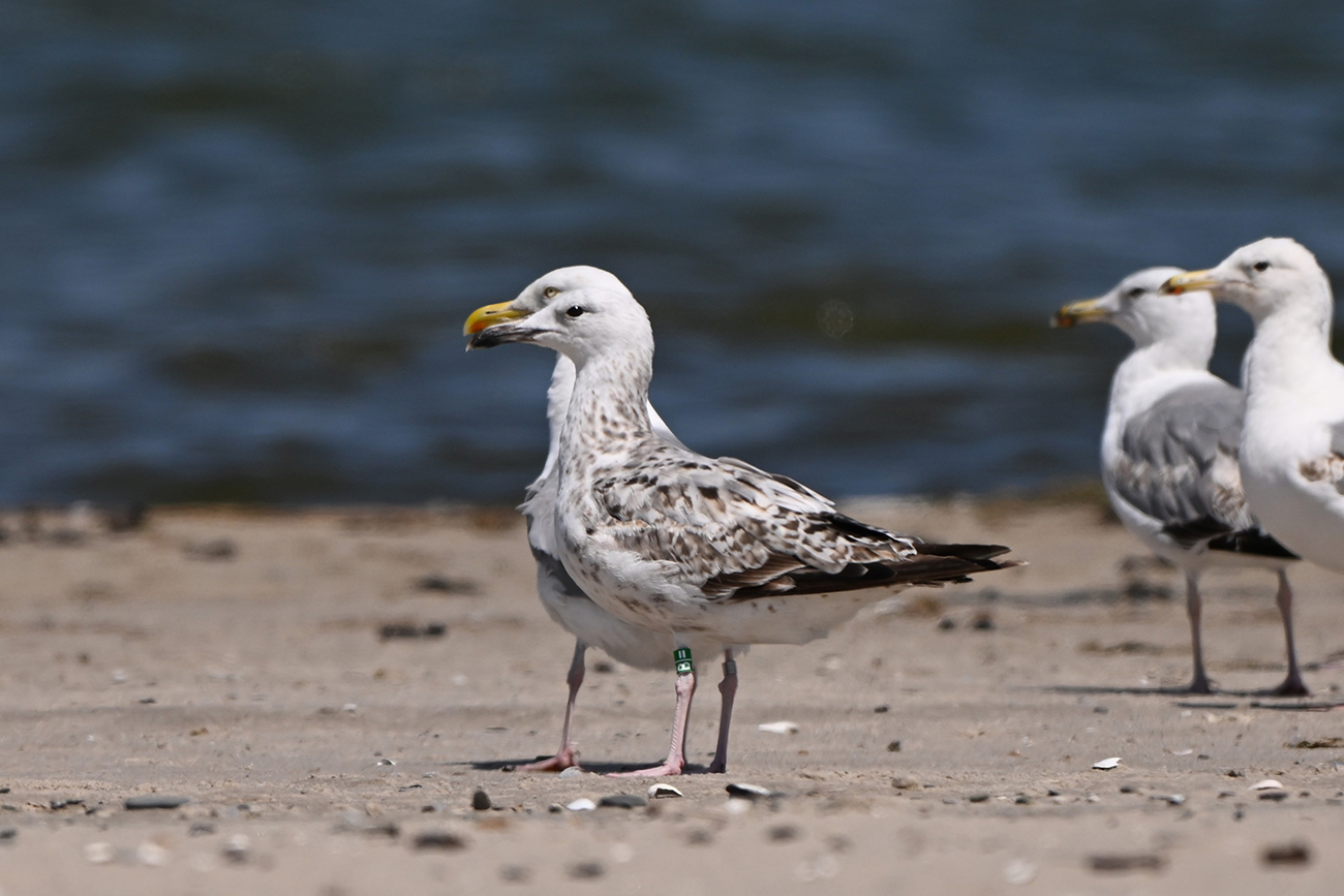 below: Caspian Gull cachinnans B|= 1CY, June 18 2024, Lelystad colony, the Netherlands. Picture: Thijs Horst & Mars Muusse.
