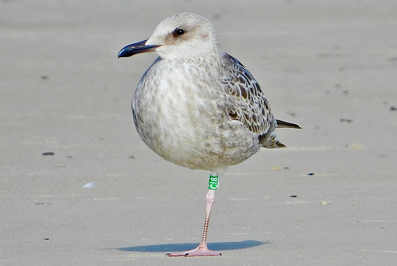 below: Caspian Gull cachinnans C|8 1CY, St.Ouen's Bay - Jersey, England. Picture: Romano da Costa.