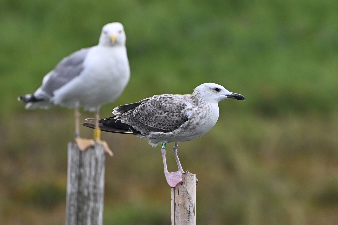 below: Caspian Gull cachinnans D|9 1CY, July 30 2024, colony De Kreupel, the Netherlands. Picture: Thijs Horst.