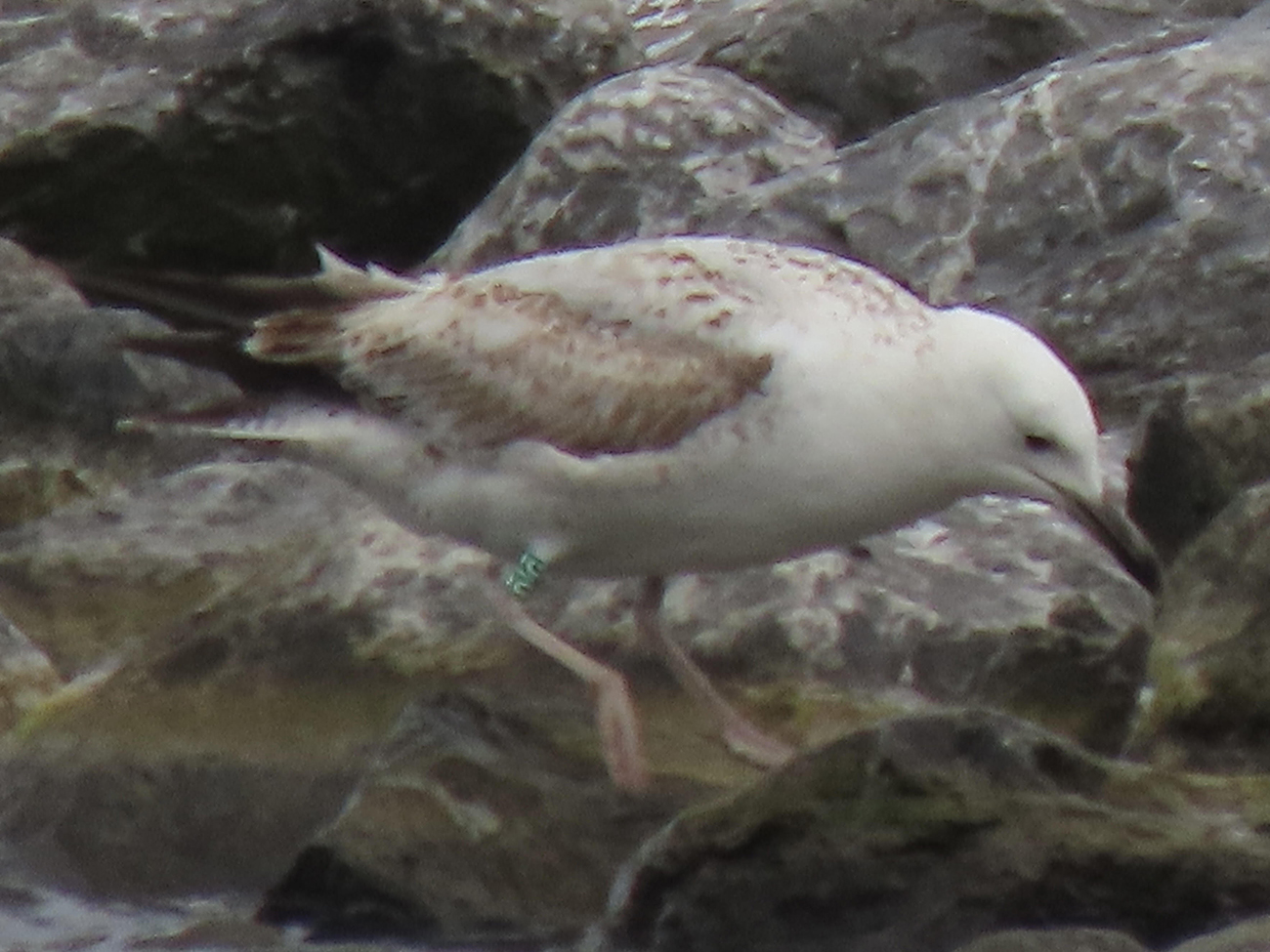 below: Caspian Gull cachinnans D|G 1CY, July 28 2024, colony De Kreupel, the Netherlands. Picture: Thijs Horst & Mars Muusse.