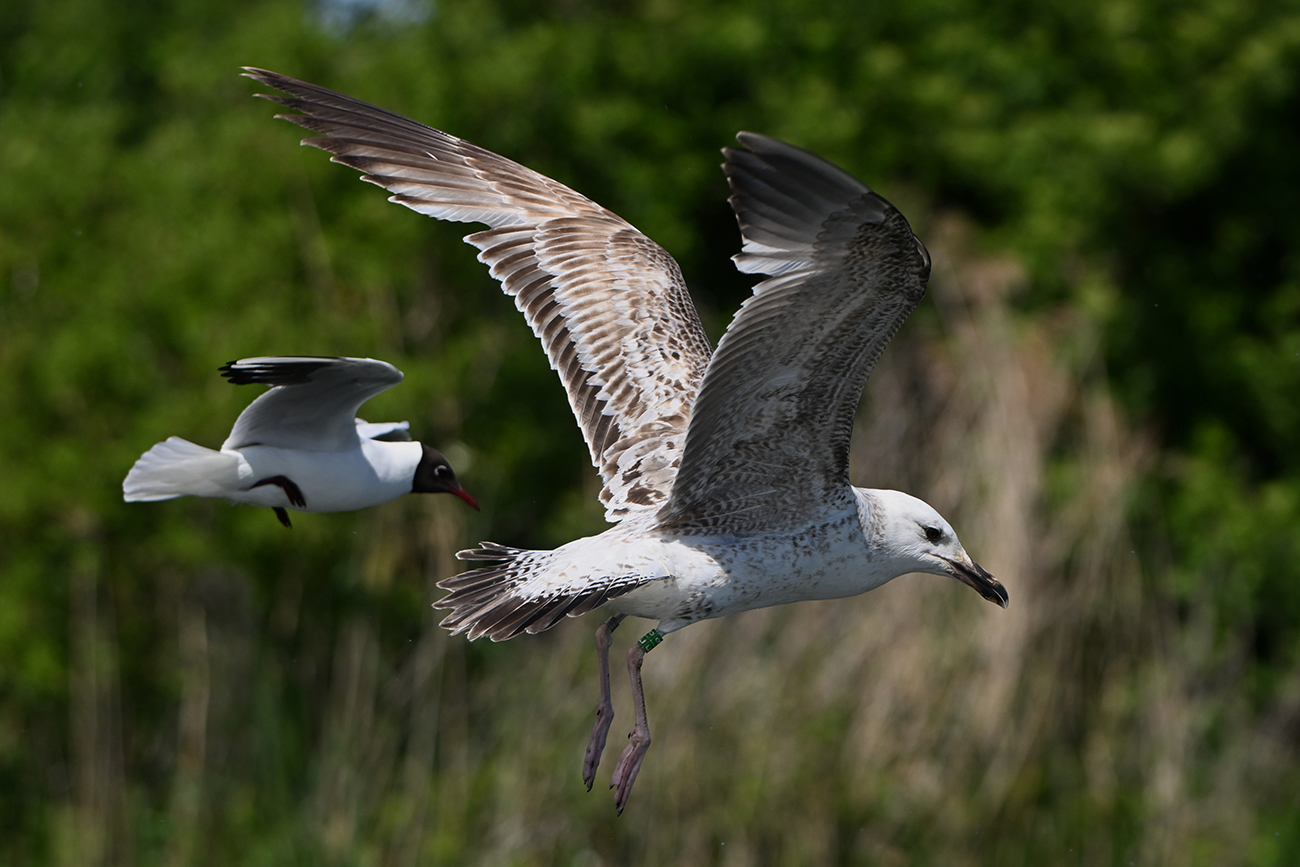 below: Caspian Gull cachinnans E|8 1CY, August 05 2024, colony De Kreupel, the Netherlands. Picture: Thijs Horst.