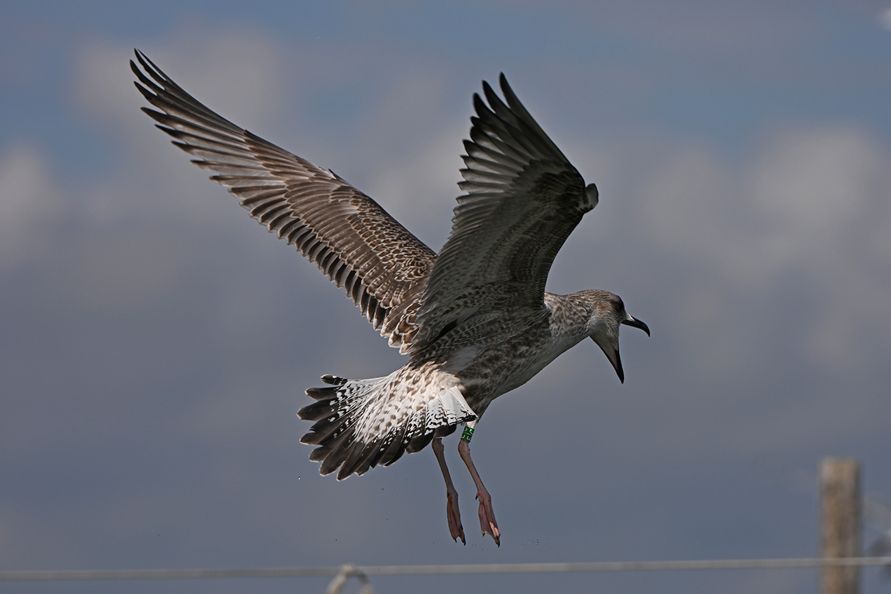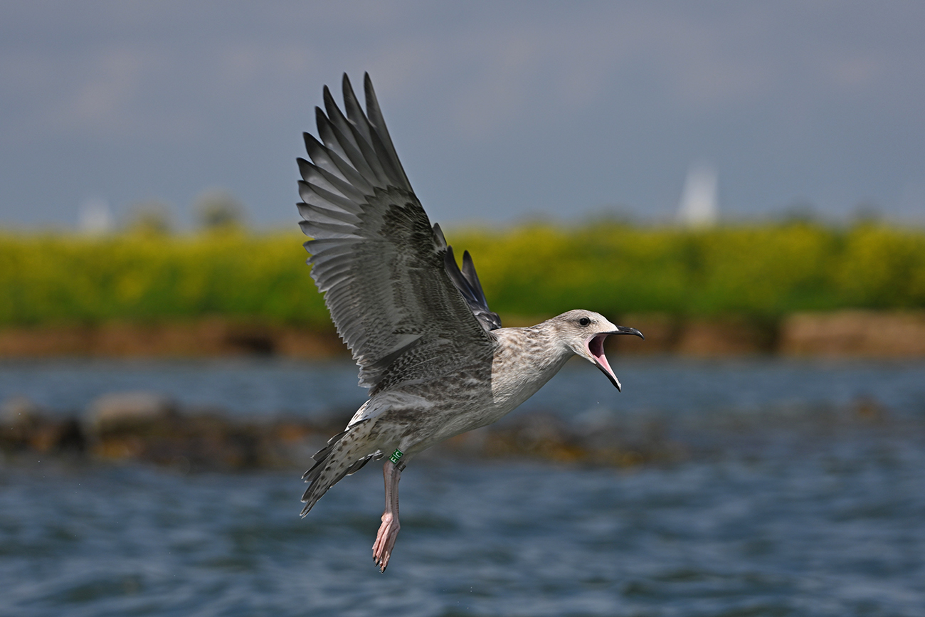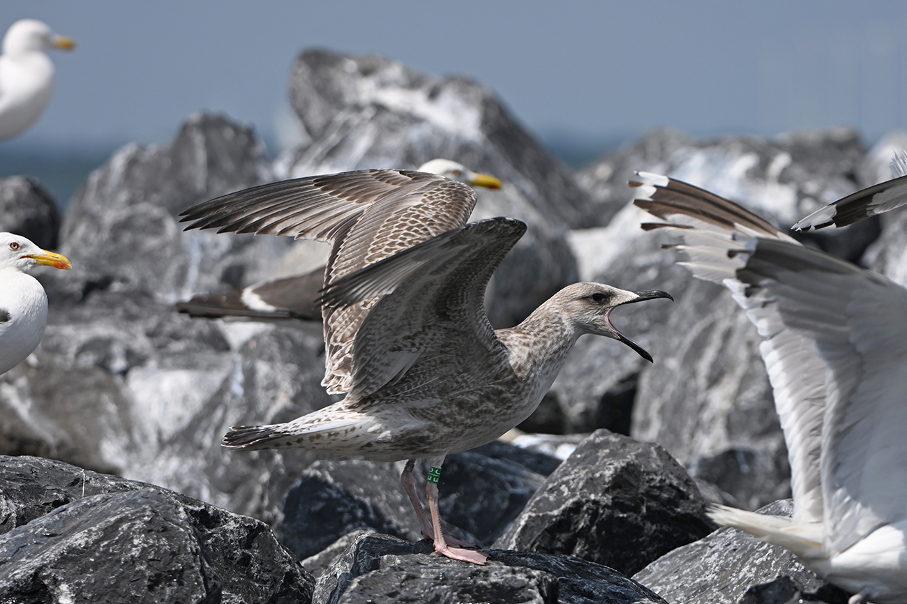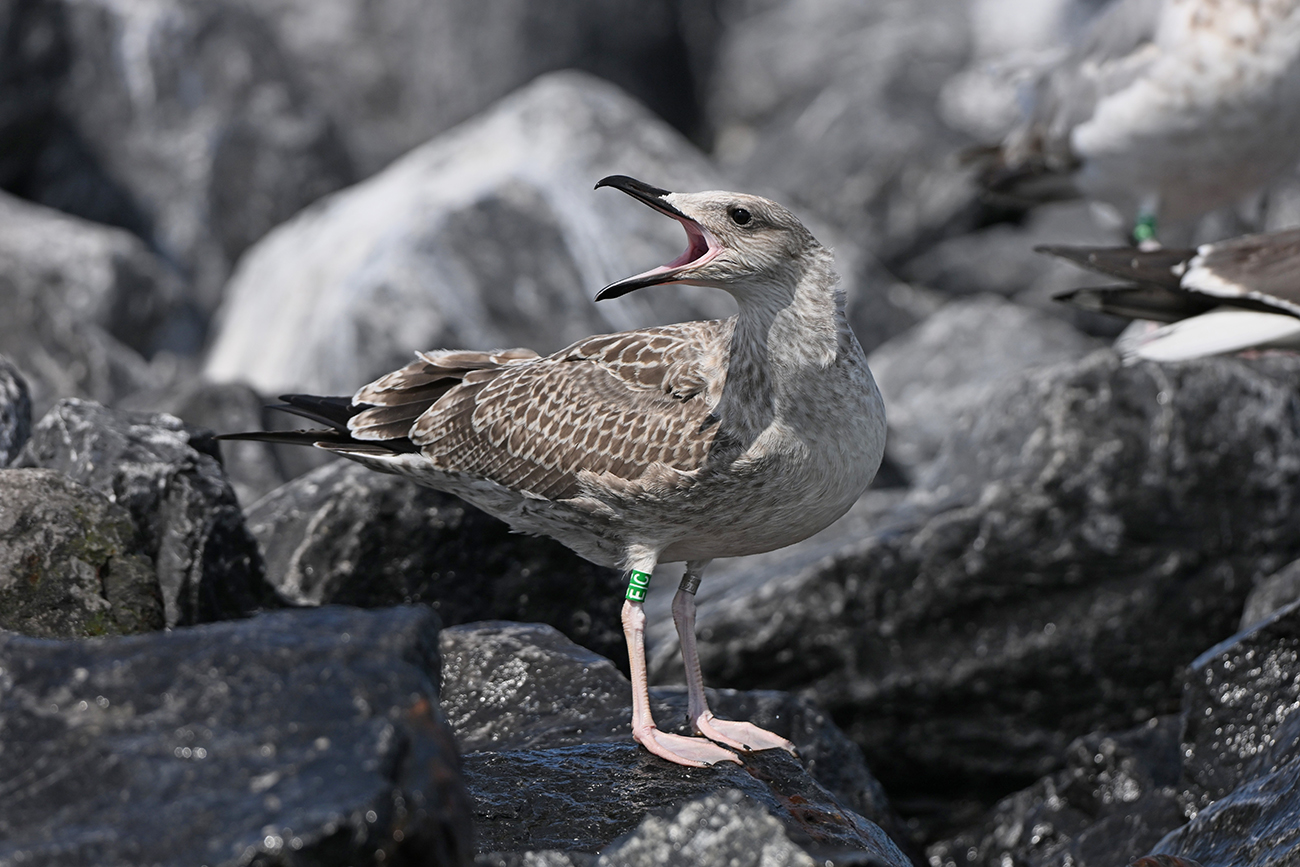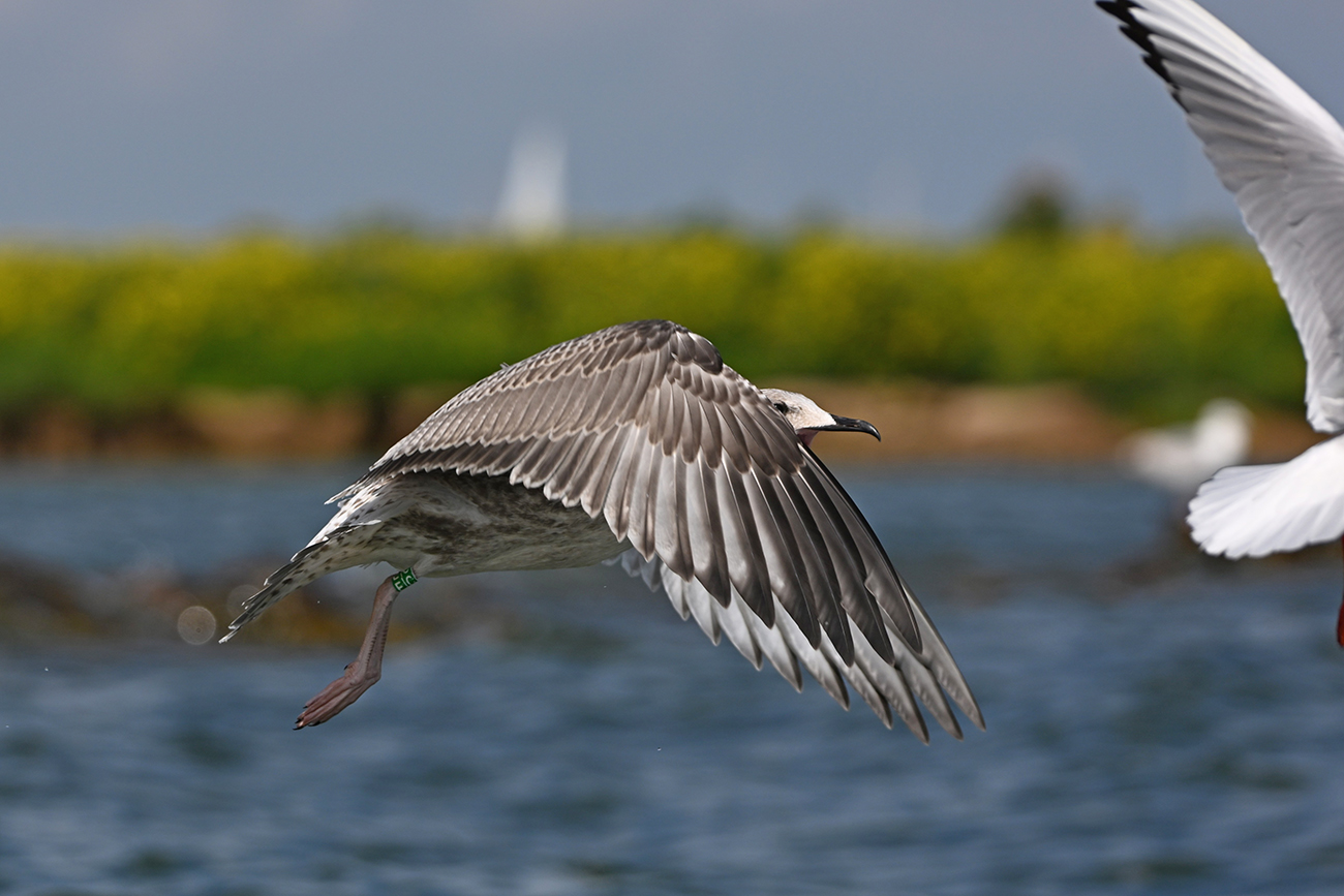 below: Caspian Gull cachinnans E|C 1CY, July 13 2025, colony De Kreupel, the Netherlands. Picture: Thijs Horst & Mars Muusse.