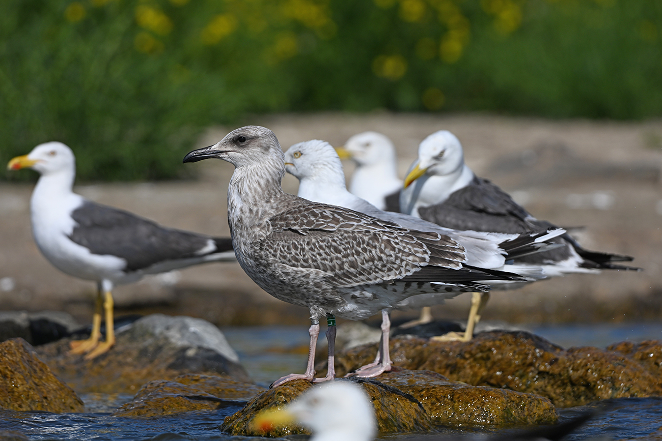 Caspian Gull cachinnans (hybrid?) L|5 1CY, April-July 2025, colony De Kreupel, the Netherlands.