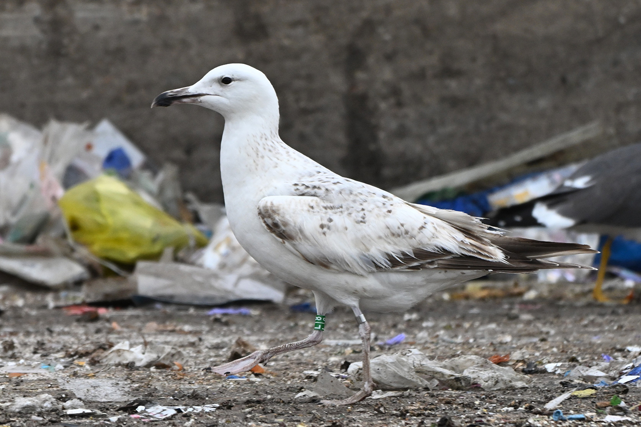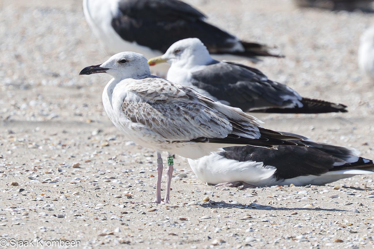 below: Caspian Gull cachinnans L|8 1CY, September 07 2025, Zandmotor, the Netherlands. Picture: Sjaak Krombeen.