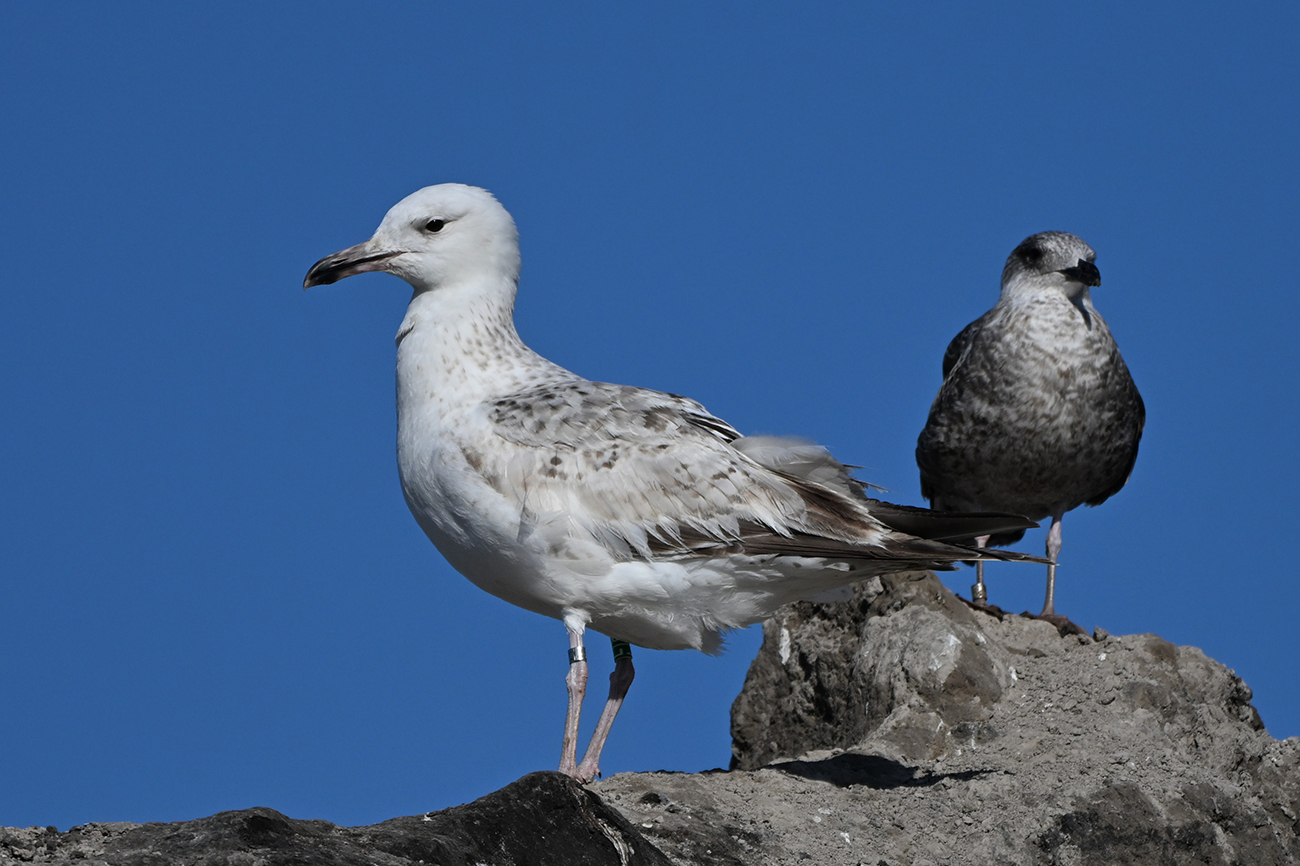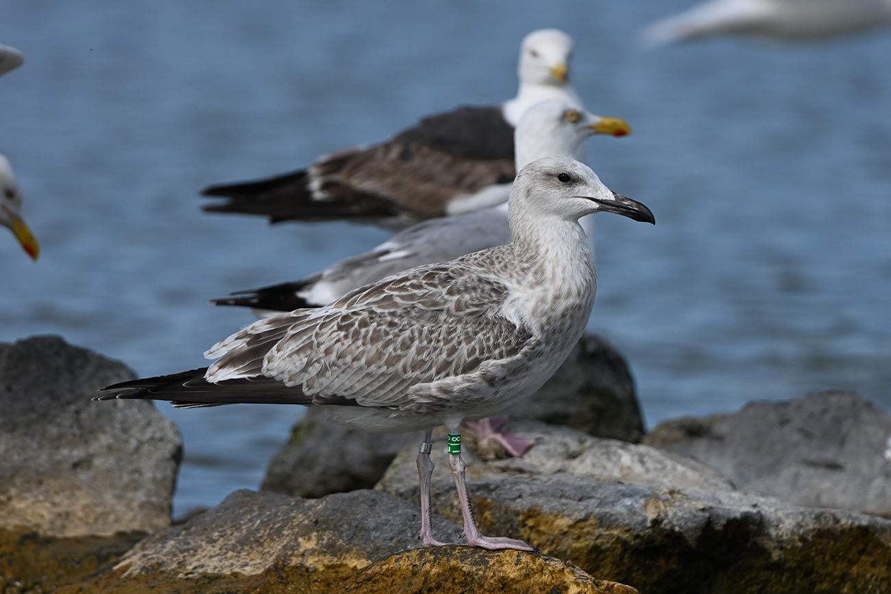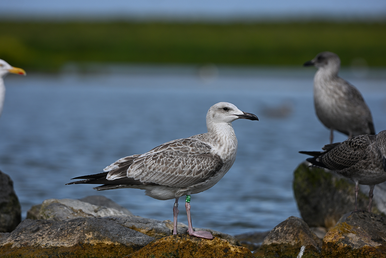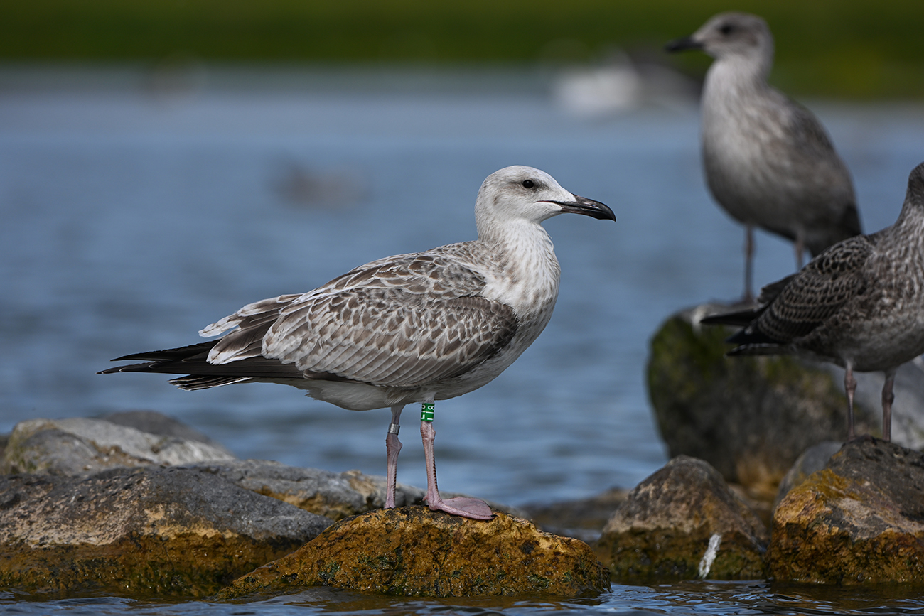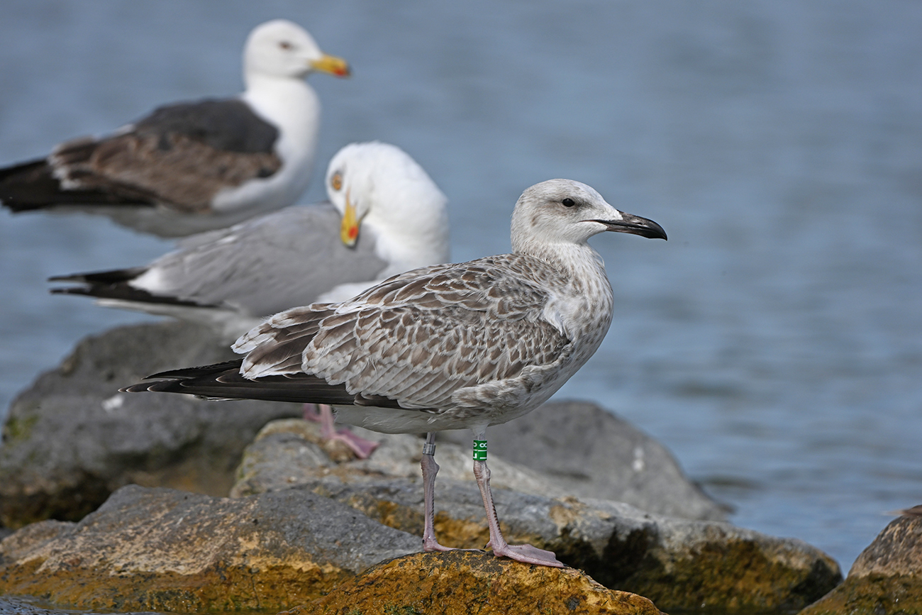 below: Caspian Gull cachinnans L|8 1CY, July 18 2025, colony De Kreupel, the Netherlands. Picture: Thijs Horst & Mars Muusse.