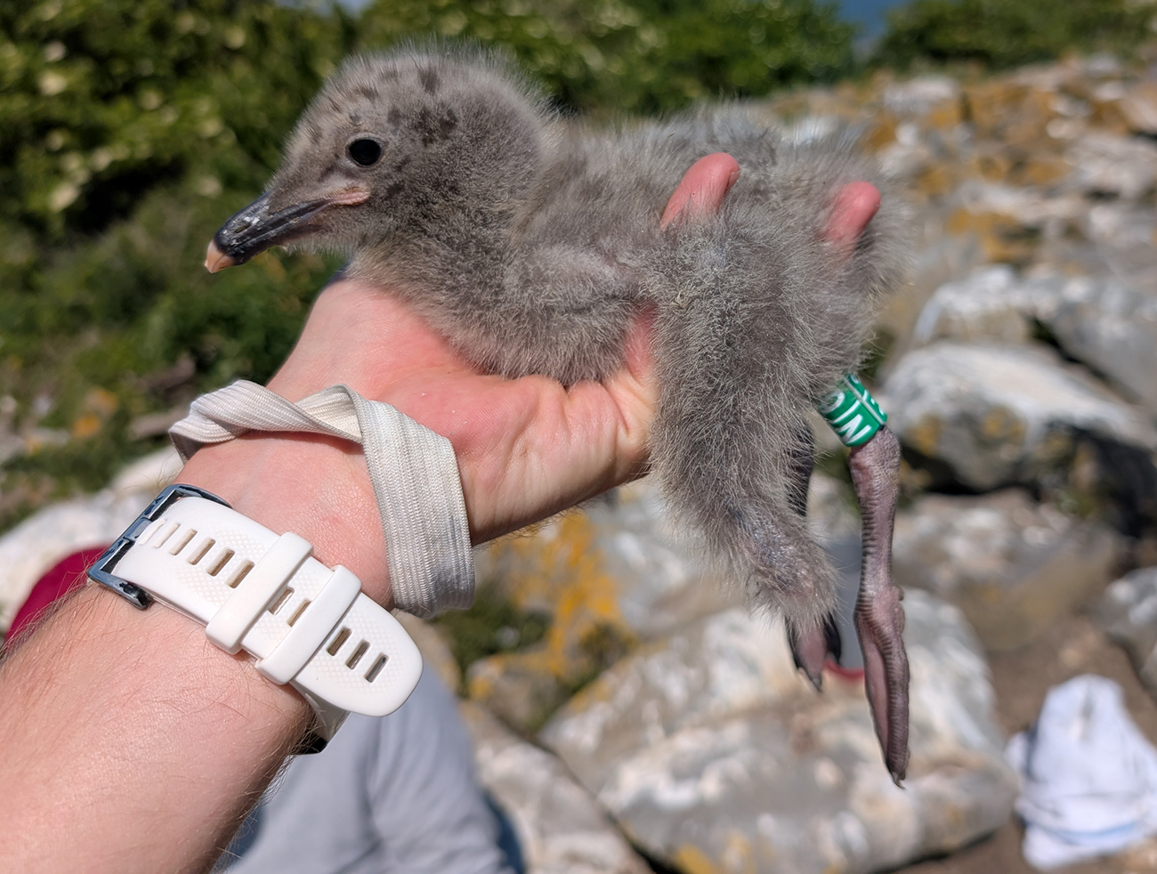 below: Caspian Gull cachinnans N|6 1CY, June 09 2025, colony Lelystad, the Netherlands. Picture: Thijs Horst.