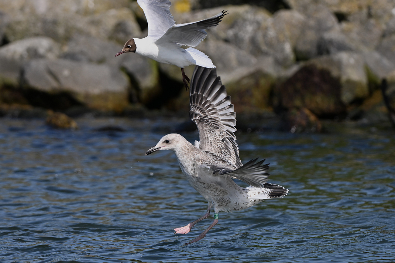 below: Caspian Gull cachinnans N|6 1CY, July 09 2025, colony Lelystad, the Netherlands. Picture: Thijs Horst.