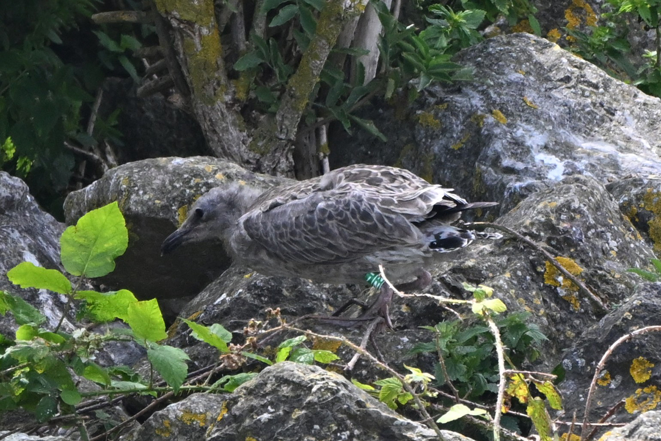 below: Caspian Gull cachinnans N|7 1CY, June 29 2025, colony Lelystad, the Netherlands. Picture: Thijs Horst.